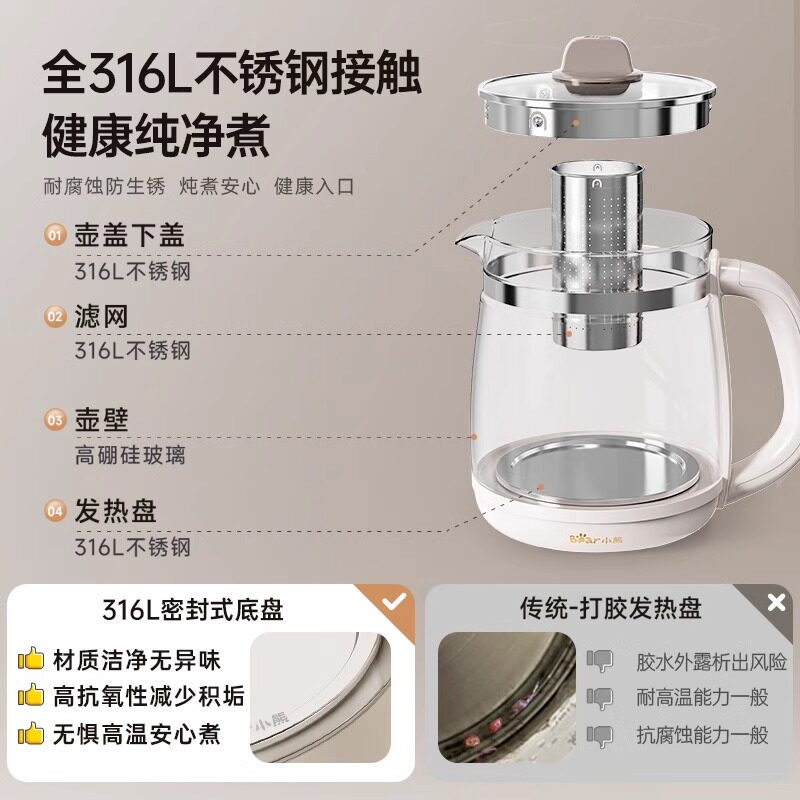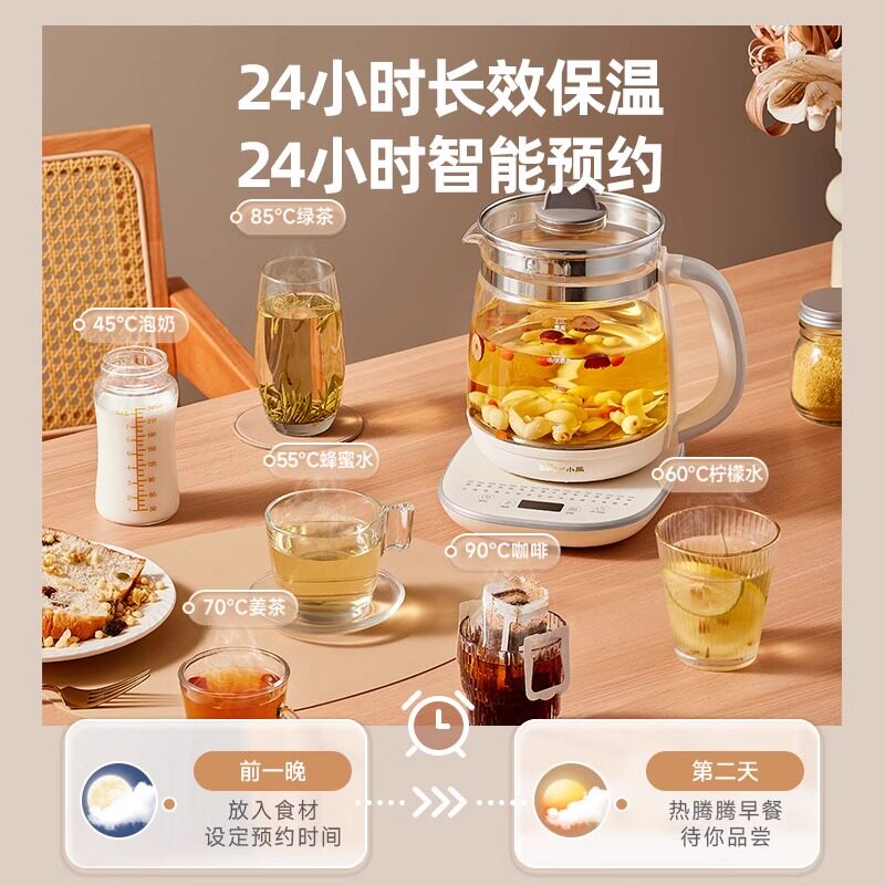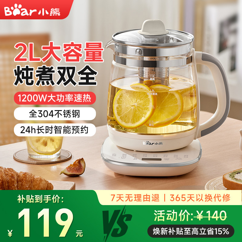 📚 小熊养生壶2L大容量办公室煮茶壶家用多功能烧水壶养生水壶官方