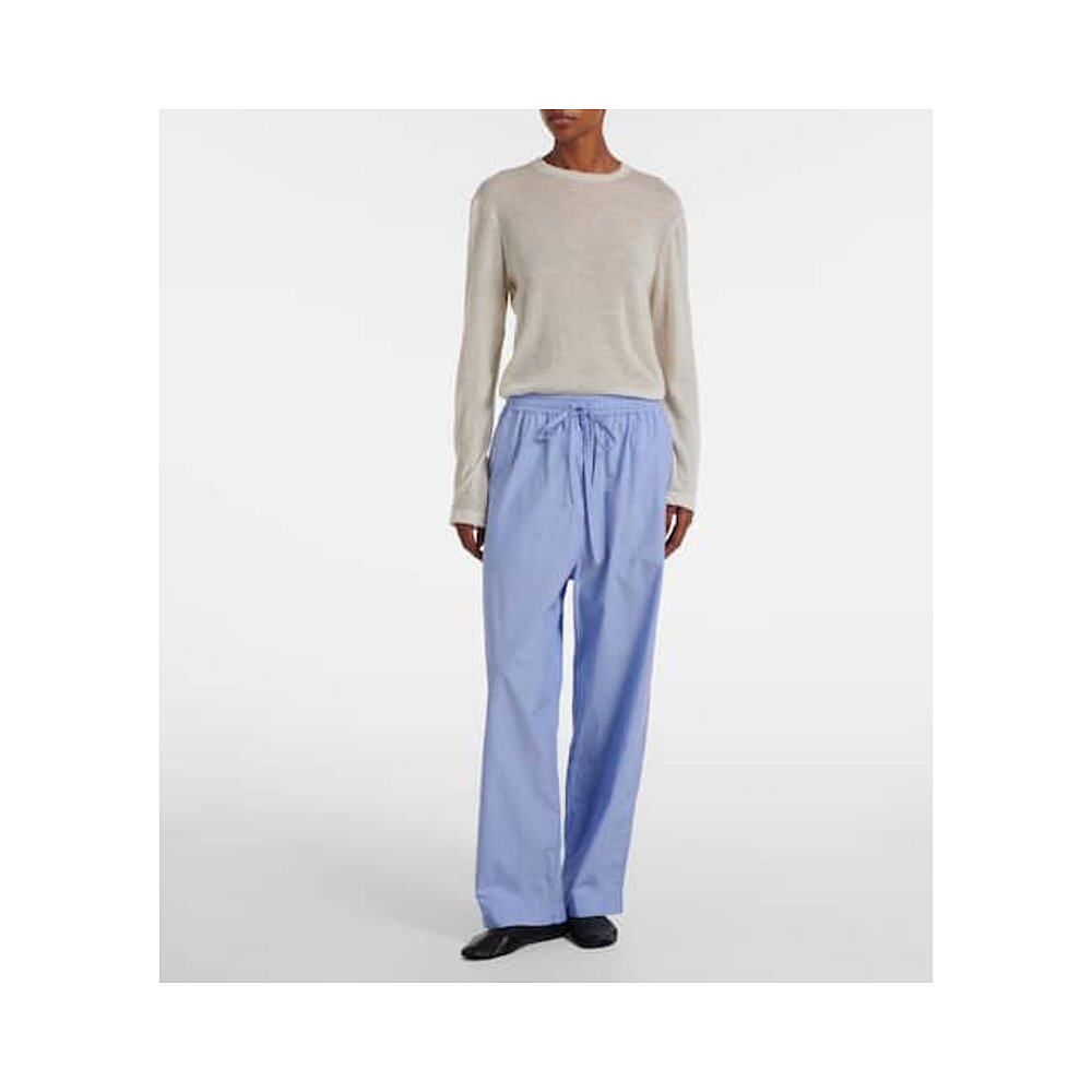 📚 香港直邮The Row 女士 Orien 条纹棉质阔腿裤 blue蓝色 舒适时尚