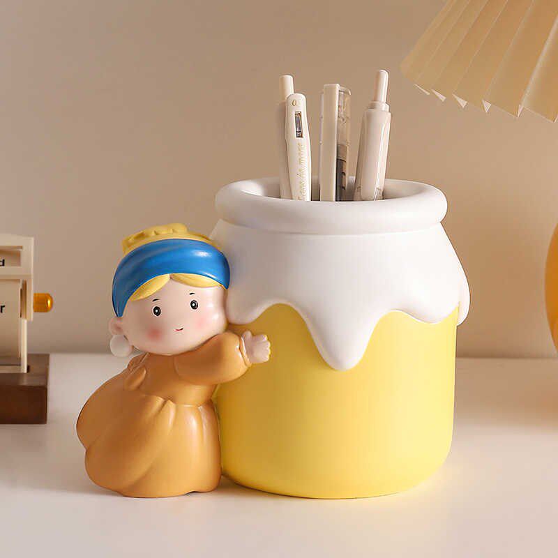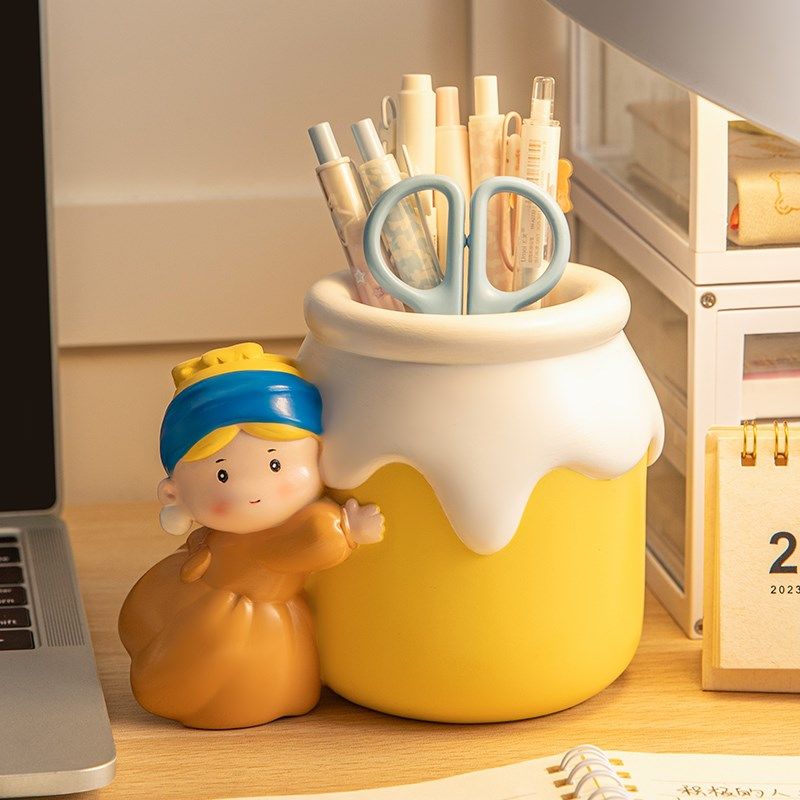 📚 创意可爱戴珍珠耳环的少女笔筒摆件办公室桌面装饰实用生日礼物女