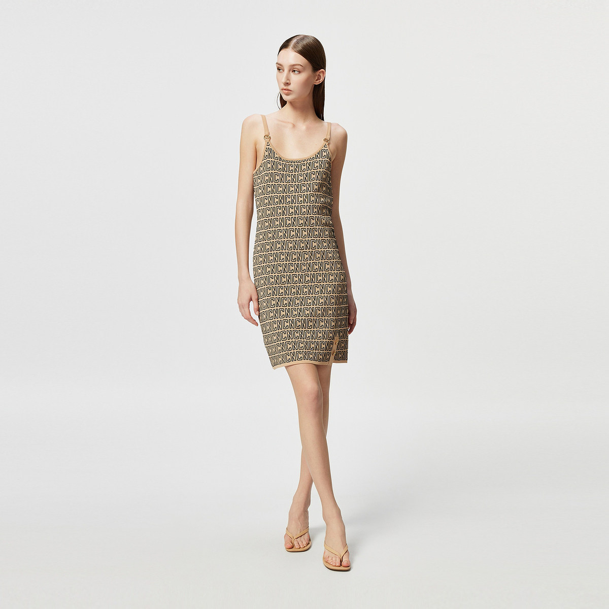 📚 CNC官方女装正品 吊带连衣裙2025春夏新款字母几何图案针织裙子