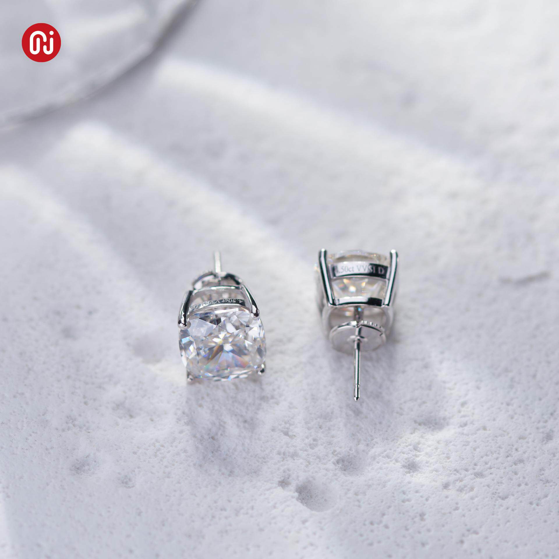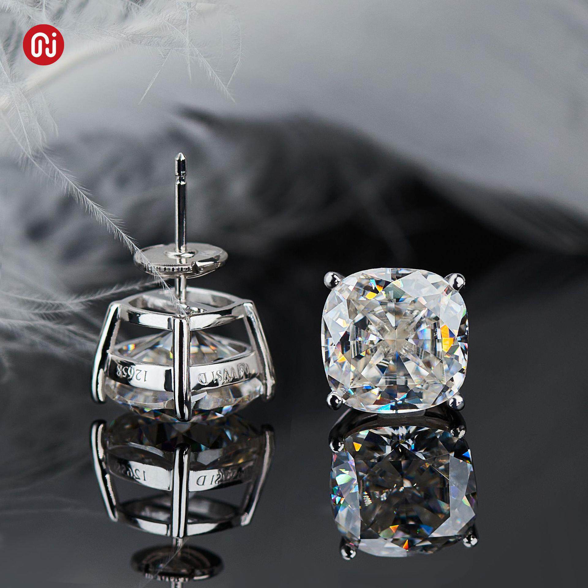 📚 GIGAJEWE 9ct白金耳环垫冰碎切割白色锁扣莫桑石耳环 情人节礼物