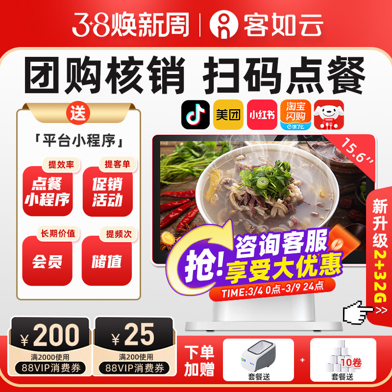 #客如云收银一体机 #美食天堂的神器 #扫码点餐 #餐饮管理 #美团外卖收款系统 #红云2C收款机软件 #优惠活动