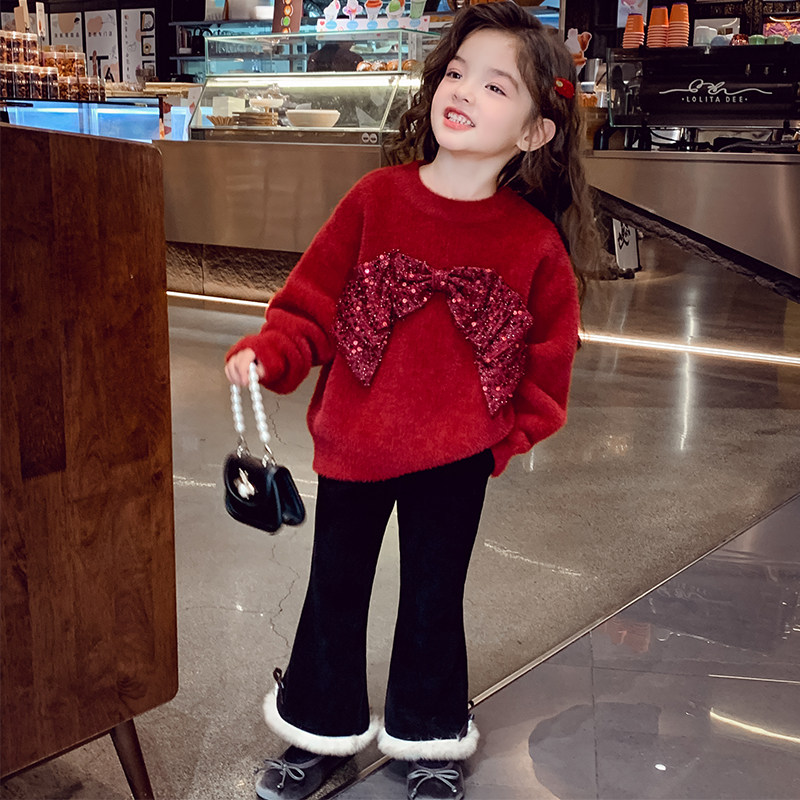 #女童套装 #冬装新款 #洋气儿童毛衣 #喇叭裤 #圣诞套装 #券后价89.6