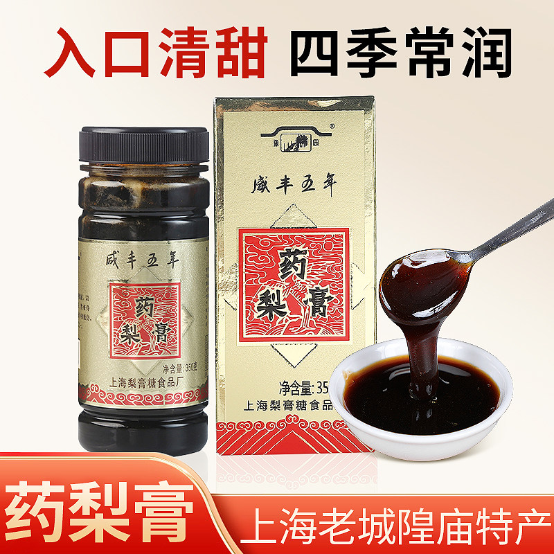 📚 上海特产老城隍庙药梨膏糖豫园牌咸丰五年350g瓶礼盒润喉清凉老字