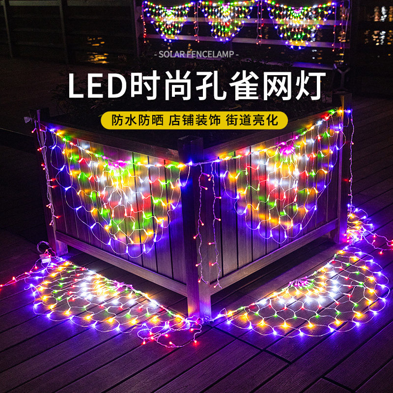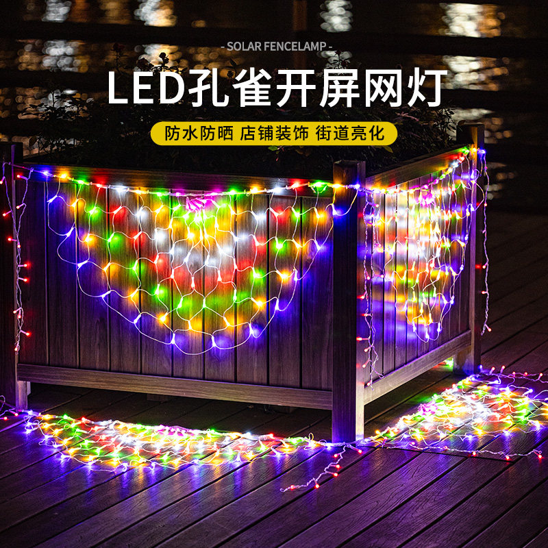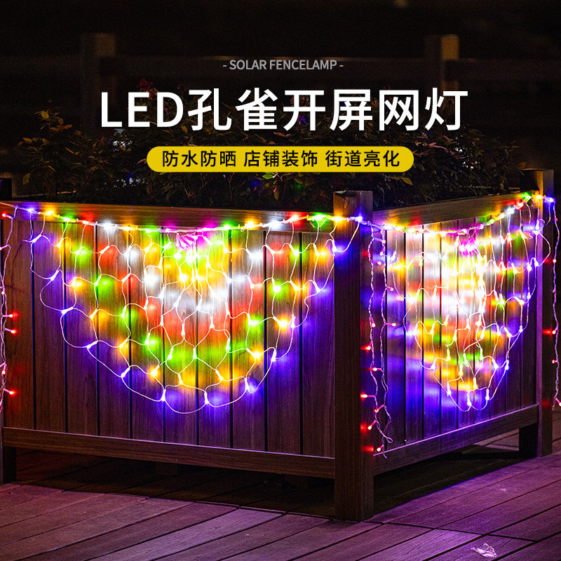 📚 户外窗帘灯网红孔雀开屏网灯彩灯闪灯串灯满天星灯亮化装饰灯氛围