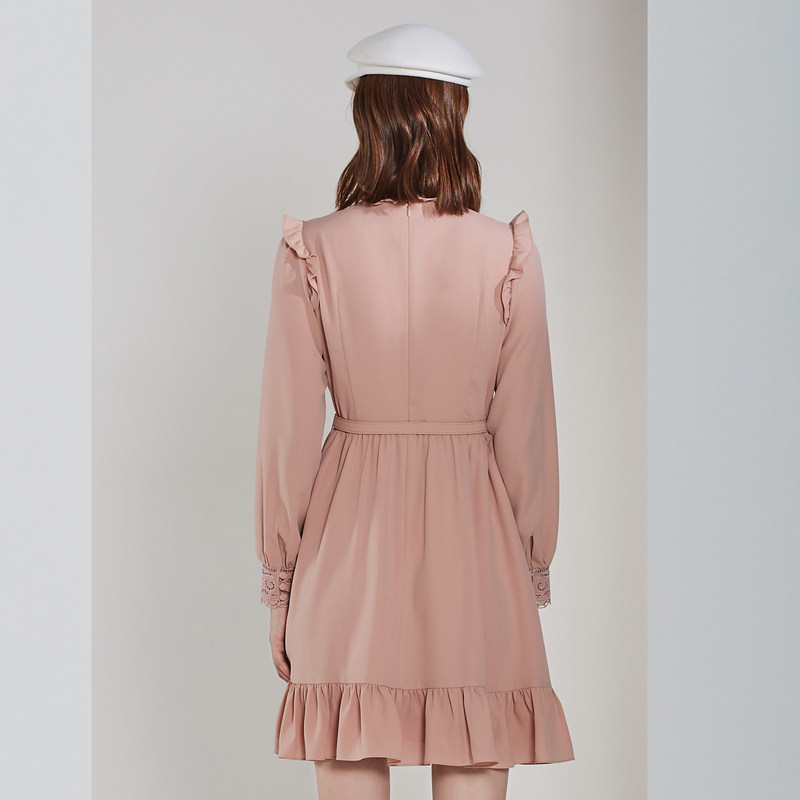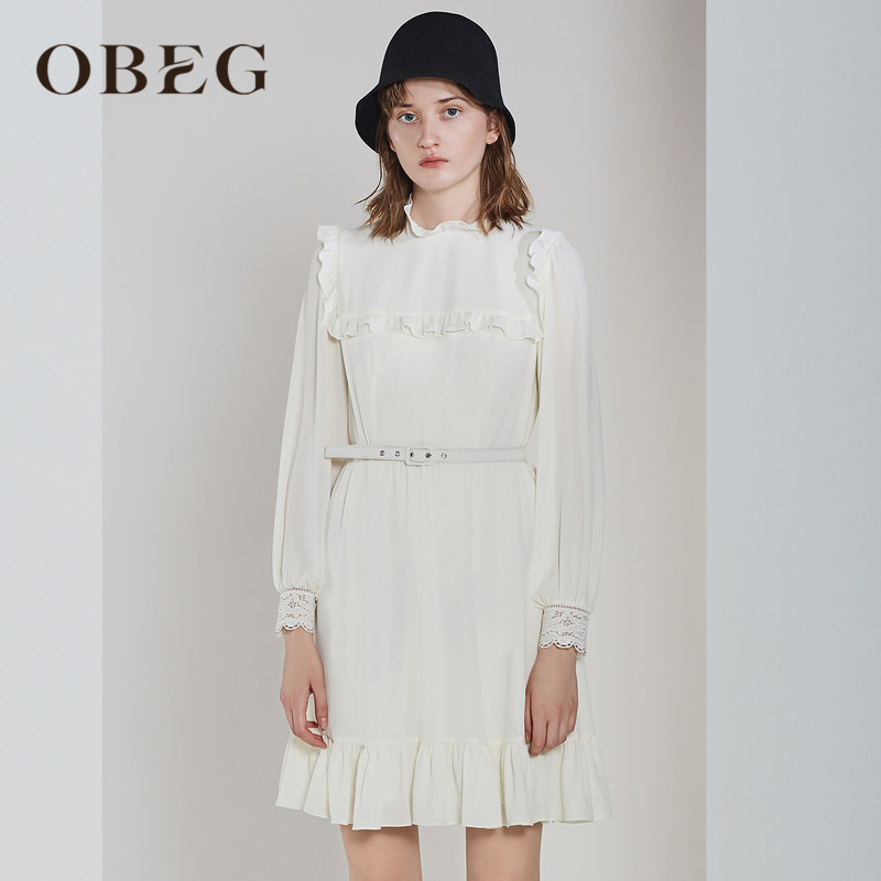 📚 OBEG欧碧倩法式宫廷风甜美连衣裙荷叶边收腰裙子10403013