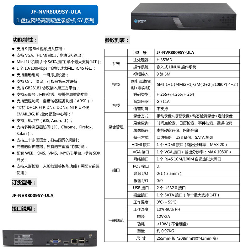 📚 巨峰杰峰10路16路单盘H.265网络硬盘录像机高清监控JF-NVR8010SY