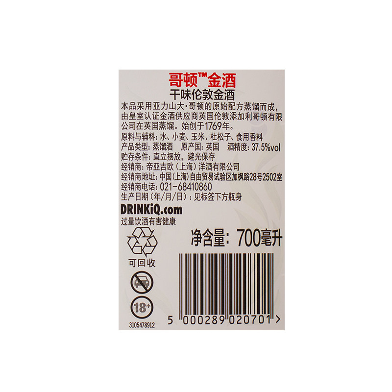 📚 双响炮洋酒包邮Gordon's Gin哥顿/歌顿金酒鸡尾酒基酒