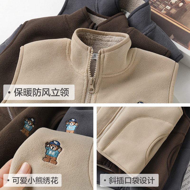 🎉宝贝们,今天我要分享一款超级心水的童装外套——右欧男童毛毛加绒马甲奥利绒背心!简直是冬日里的温暖守护者!