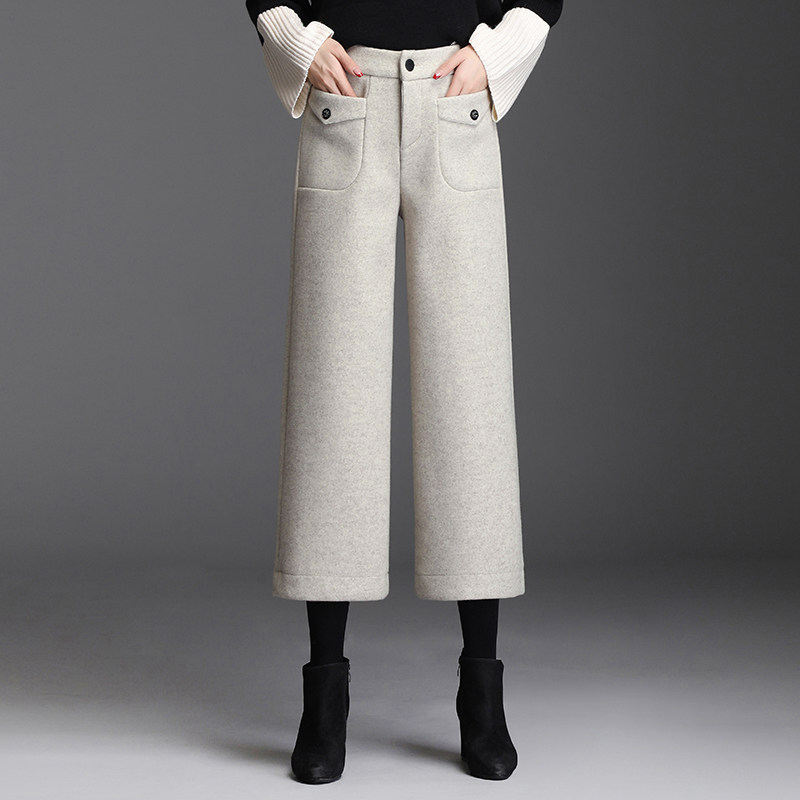 📚 2025秋冬季新款时尚毛呢阔腿裤高腰显瘦直筒裤百搭八分裤休闲靴裤
