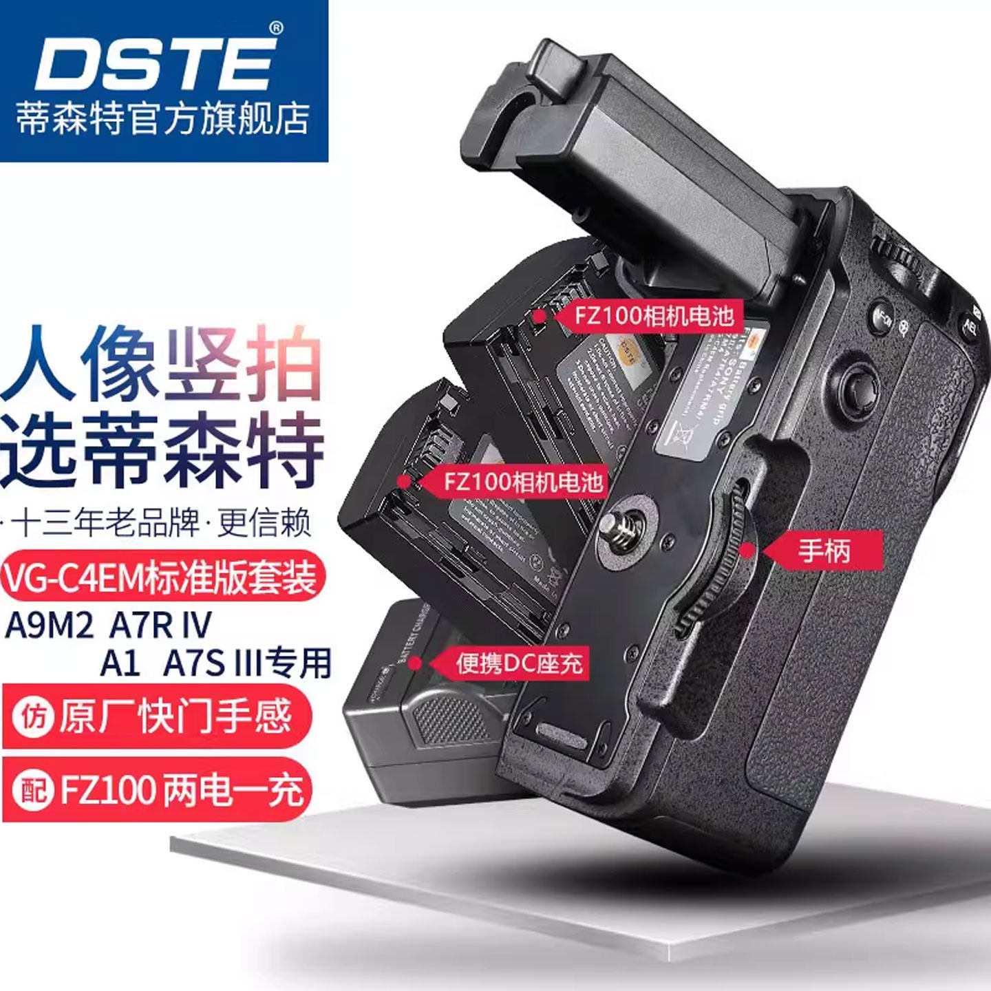📚 蒂森特VG-C4EM电池盒 适配A9MII索尼A7M4 A7M5相机A7R5 A7R4 A1 A7RM4相机配件竖拍供电侧手柄
