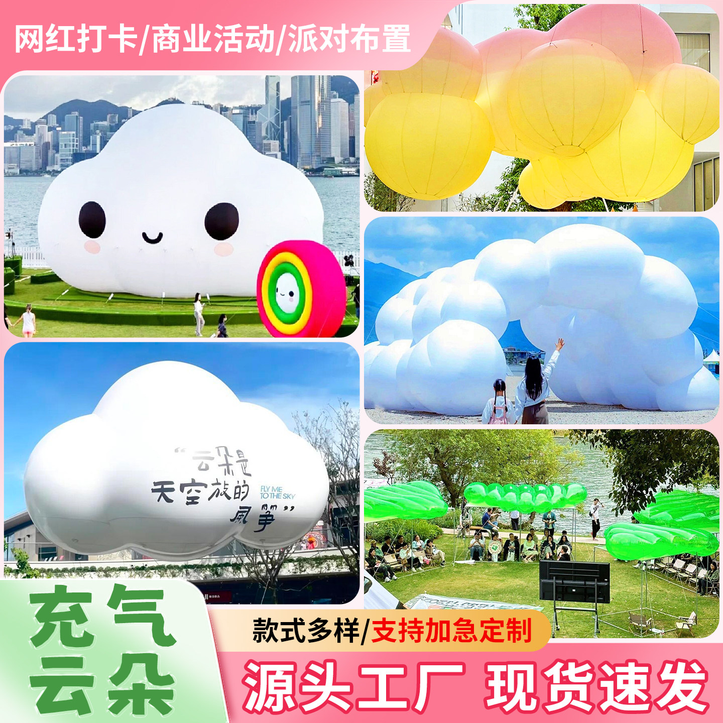 📚 网红充气云朵气模商业活动派对布置花朵字体发光卡通造型道具定制