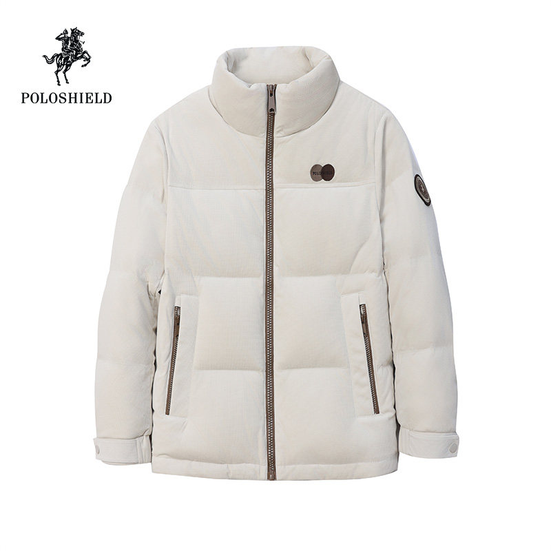 📚 POLOSHIELD男士立领短款90鸭绒羽绒服白色保暖面包服外套