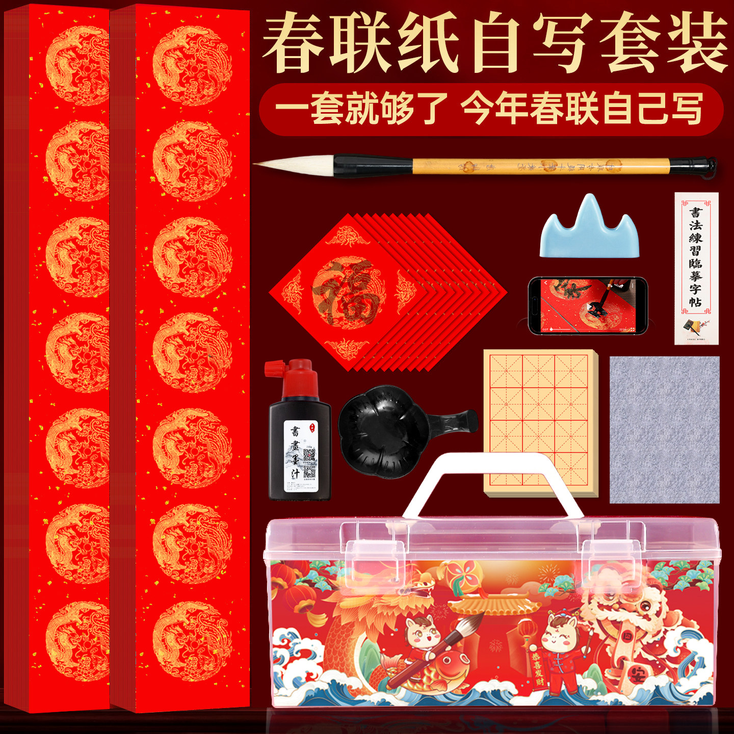 📚 2026春联纸自写套装对联毛笔儿童练毛笔字书法专用初学者用笔墨纸砚手写笔墨全套工具对联纸福字红纸临摹描红