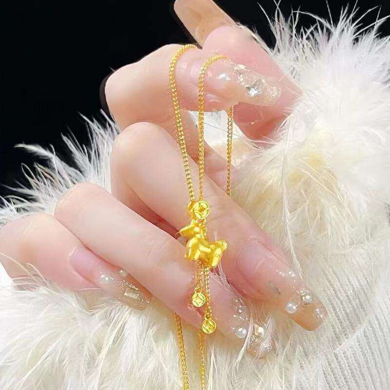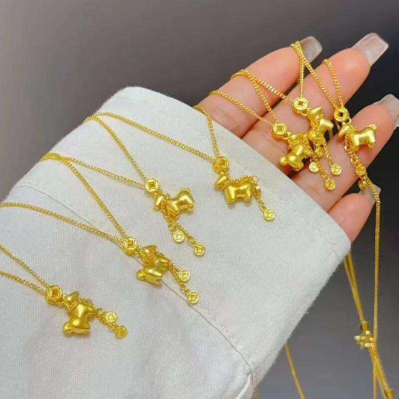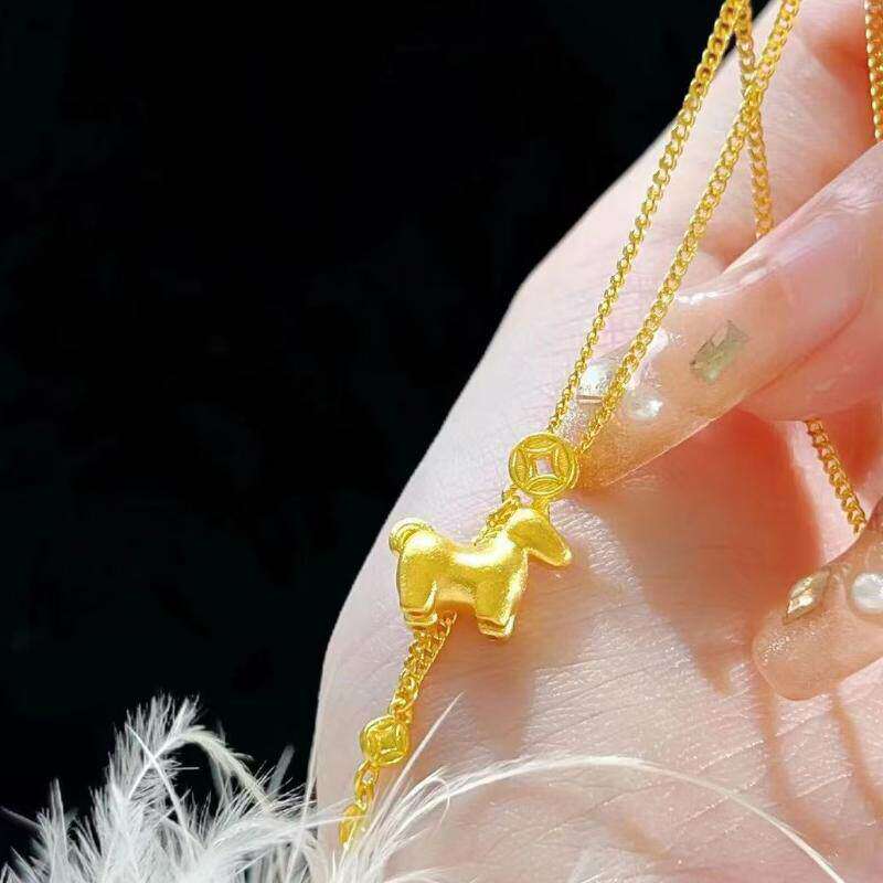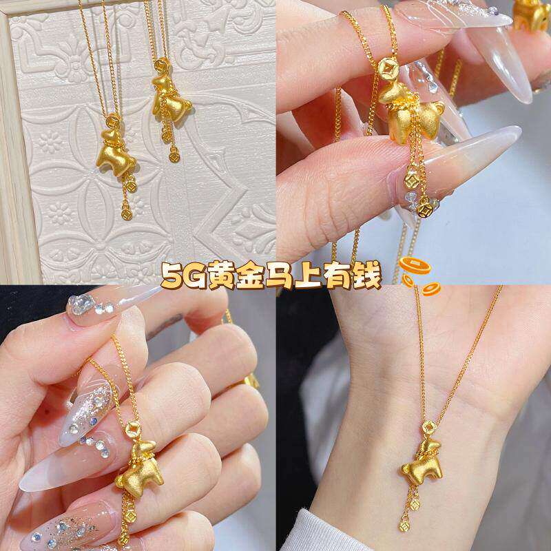 📚 5G黄金马上有钱项链女999足金新款生肖马锁骨套链纯金一体链送礼