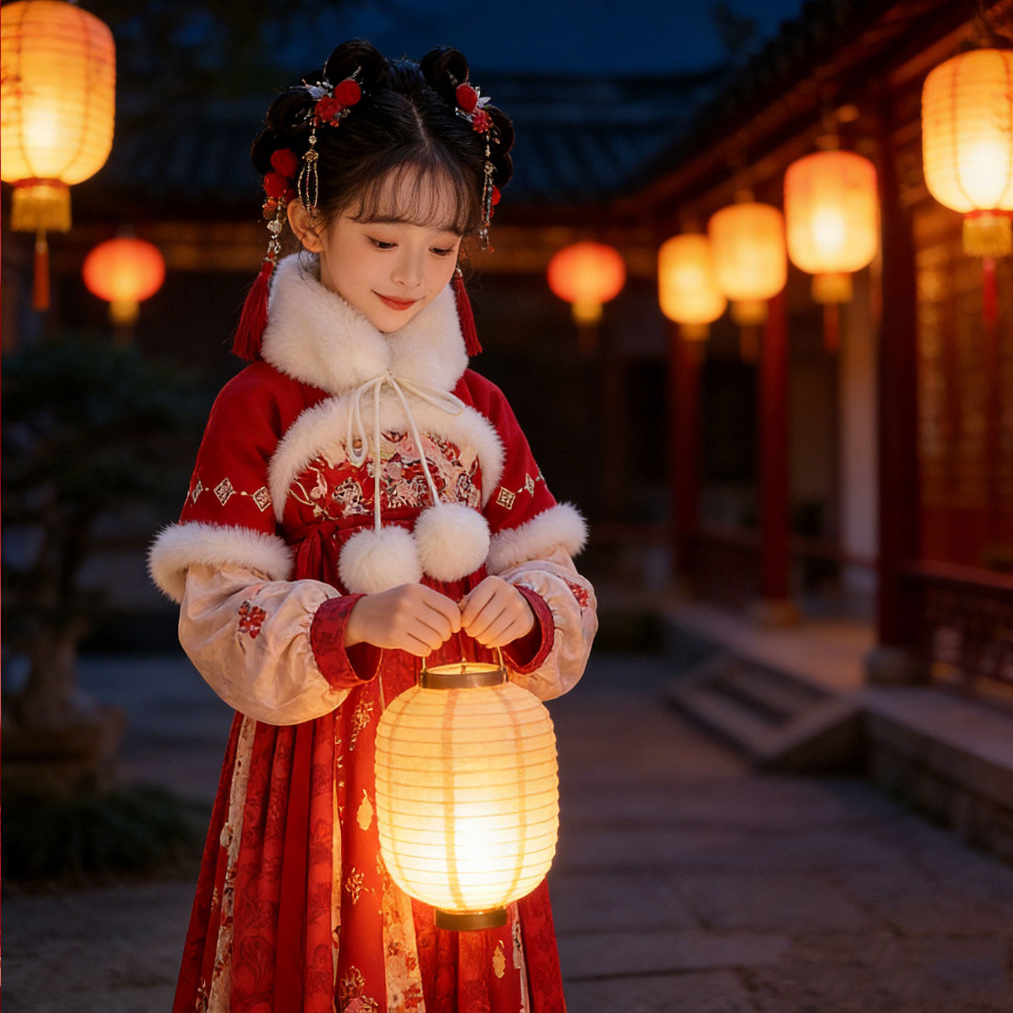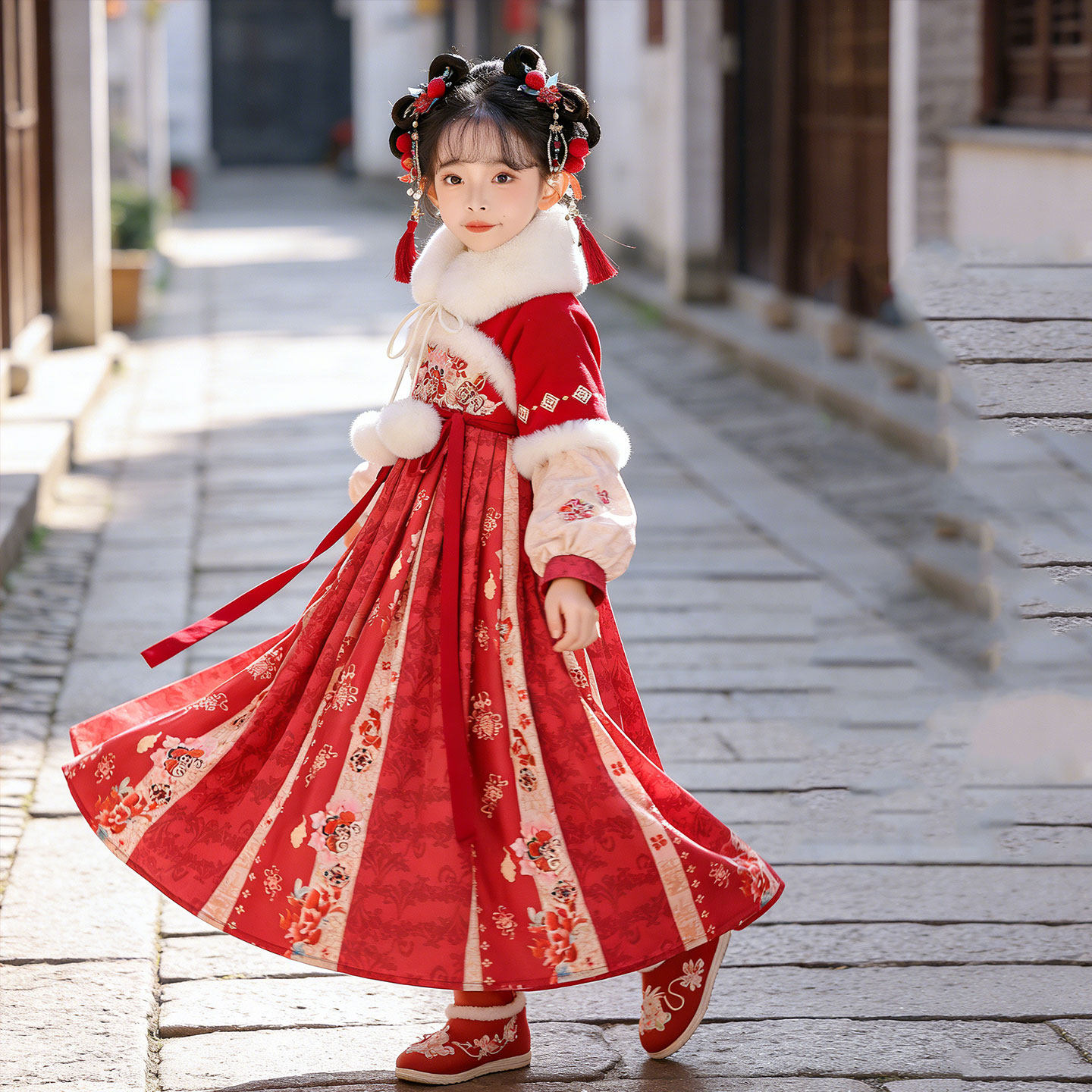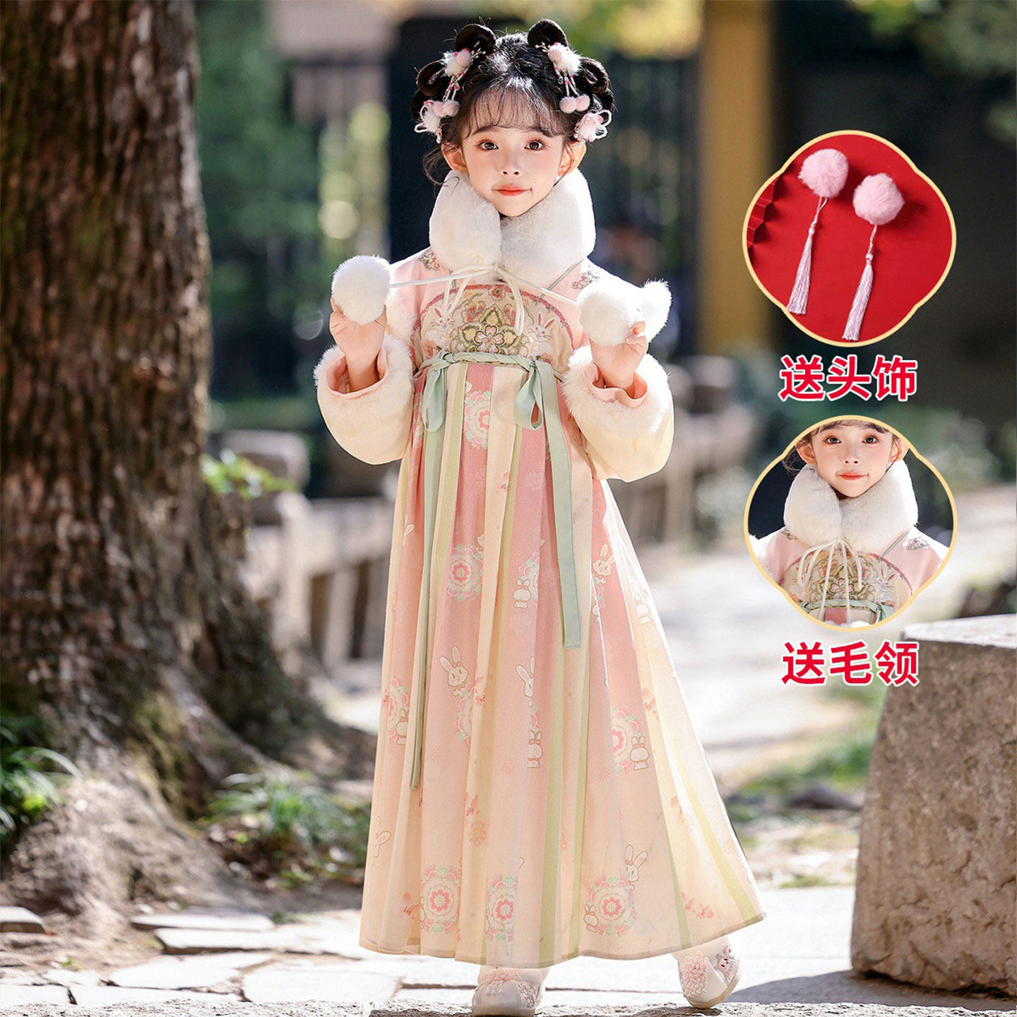 📚 可爱女孩过年喜庆拜年服锦鲤唐装汉服舞蹈演出服装桃花笑万马奔腾