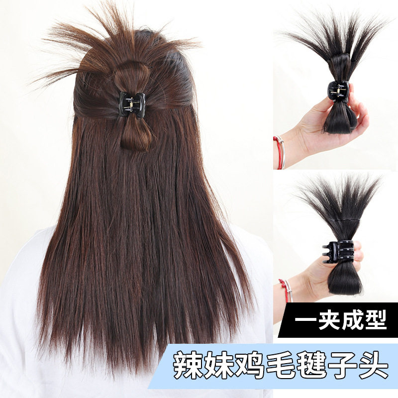 📚 网红鸡窝丸子头慵懒风半扎鸡毛毽子头辣妹头发蓬松抓夹假发发包女