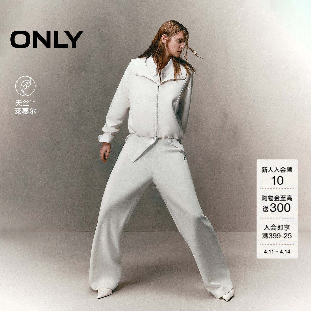 📚 ONLY春季宽松落肩天丝双向拉链云朵下摆开衫卫衣外套上衣女