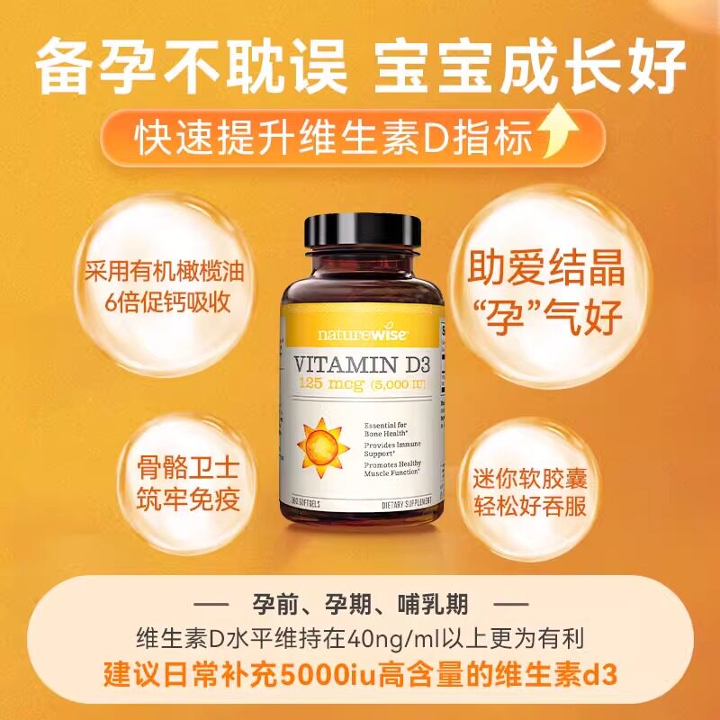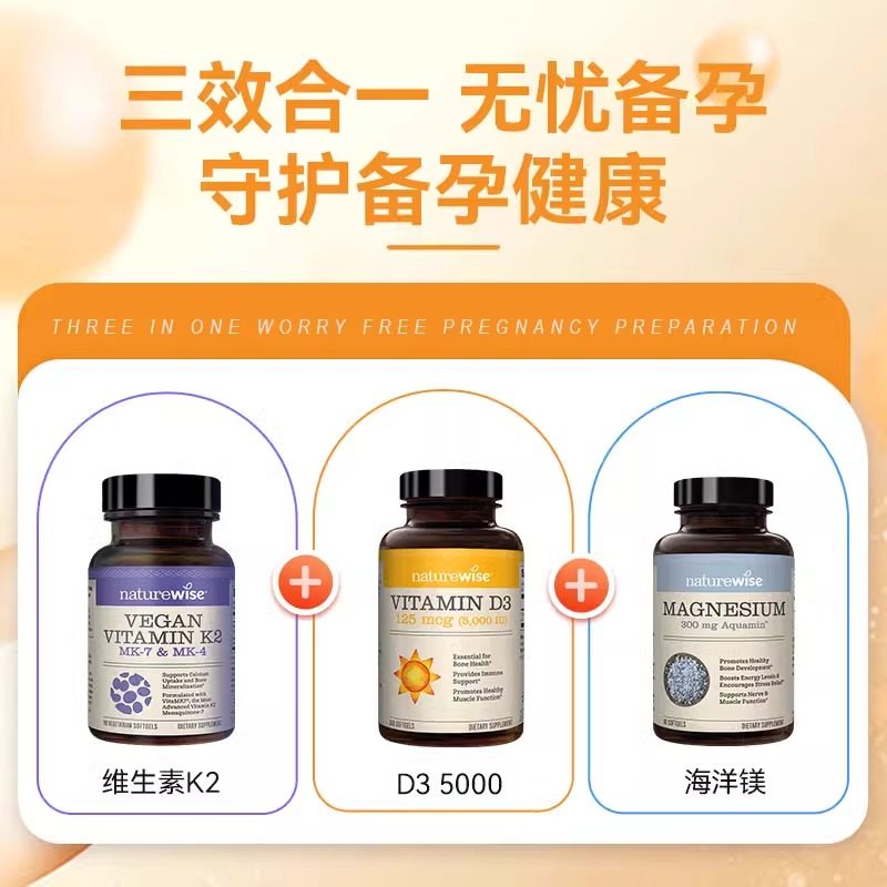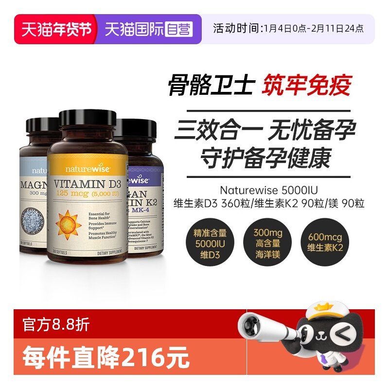 📚 【自营】【D3K2镁三合一】Naturewise健骨三件套阳光瓶D3K2镁成人