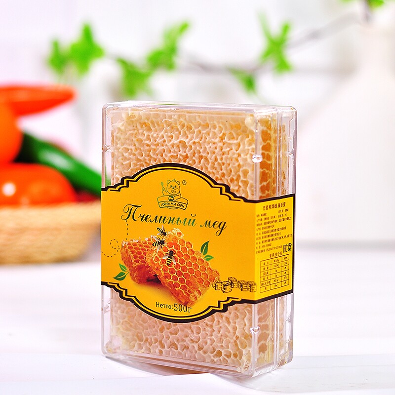 📚 俄罗斯风味蜂巢蜜然蜂蜜椴树雪蜜封盖百花蜜500克每盒天营养食品