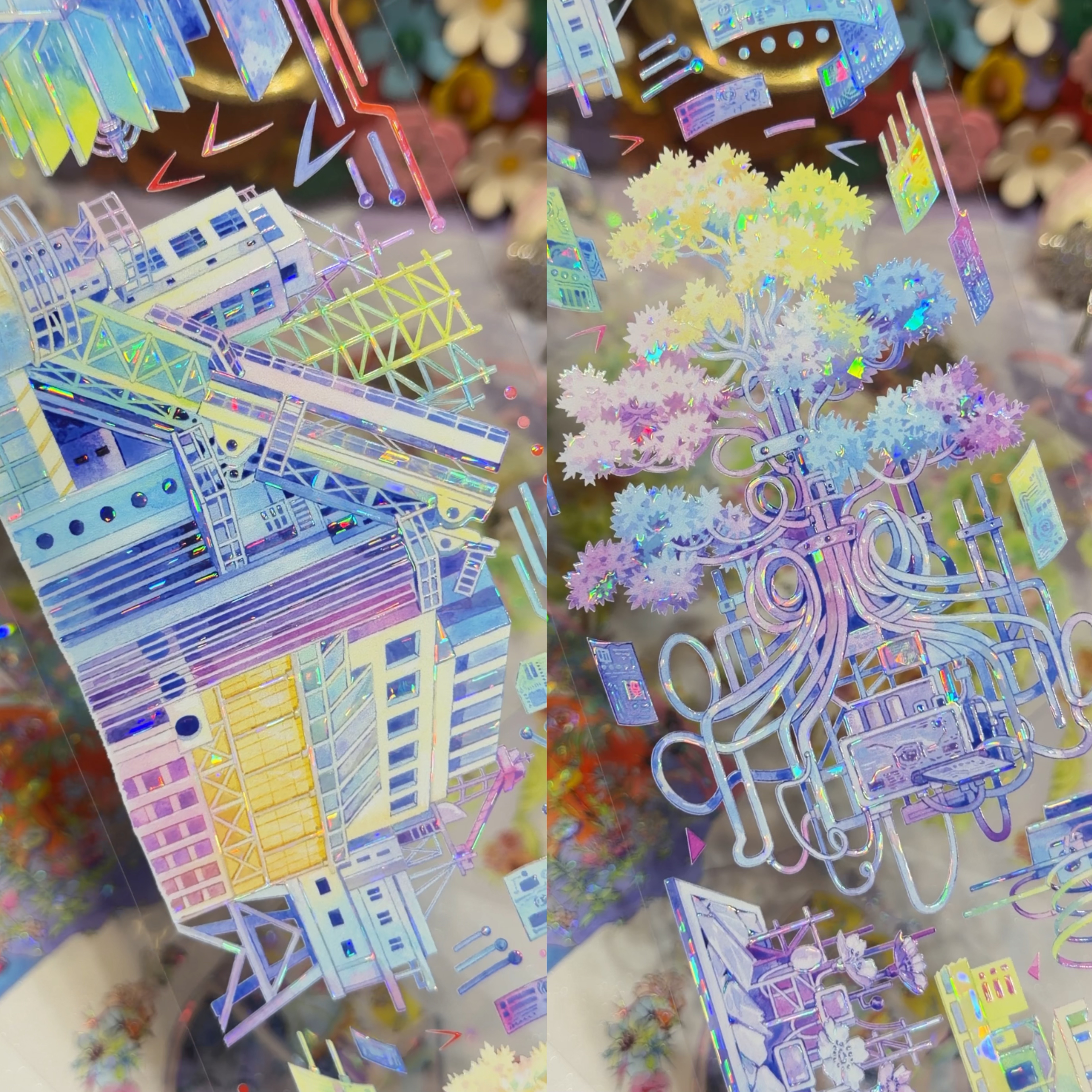 📚 一木一横分装手账胶带霓虹星溯赛博建筑流麻咕卡背卡