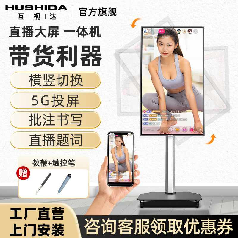 📚 互视达网红直播一体机直播设备全套投屏导播专用投屏互动显示器抖音触摸横竖屏推流一体机网红带货直播大屏
