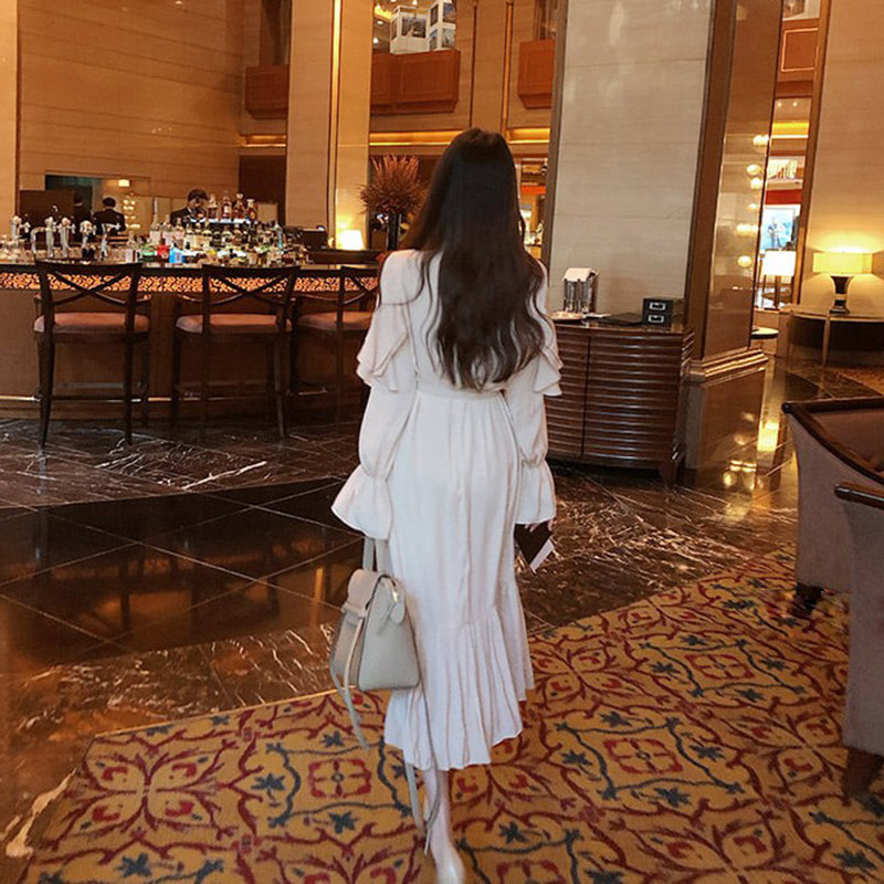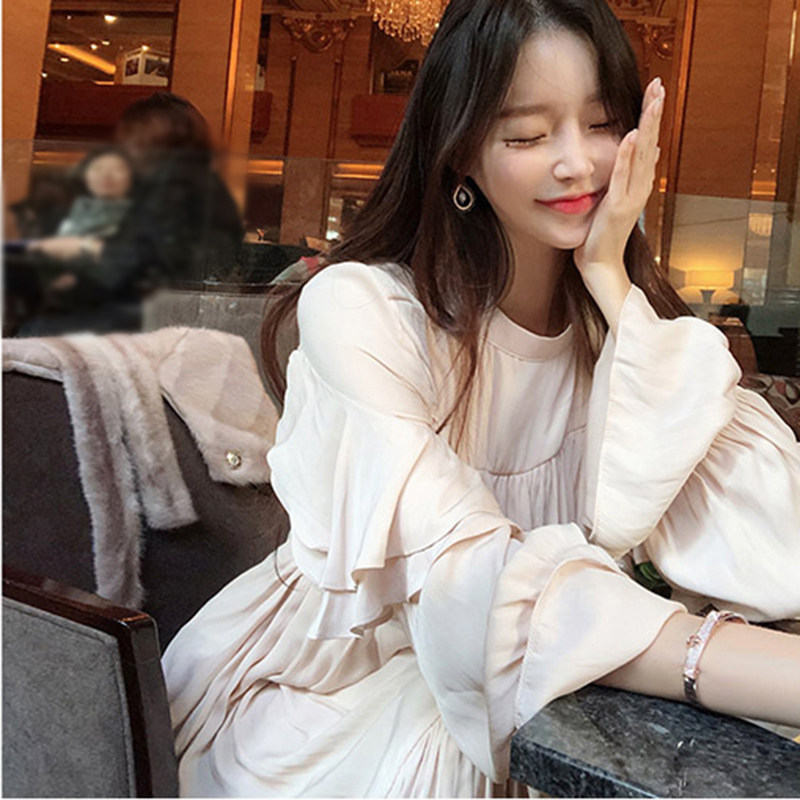 📚 2024春大码女装胖mm韩版东大门新款仙女荷叶边裙气质飘逸连衣长裙