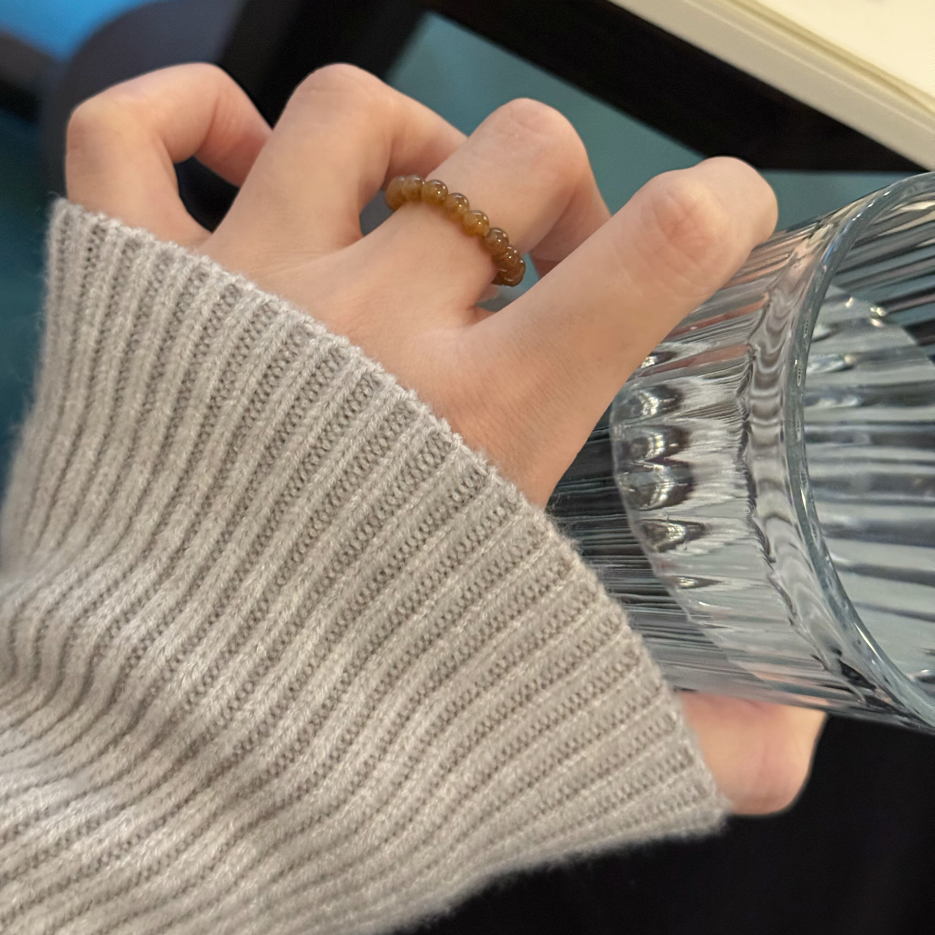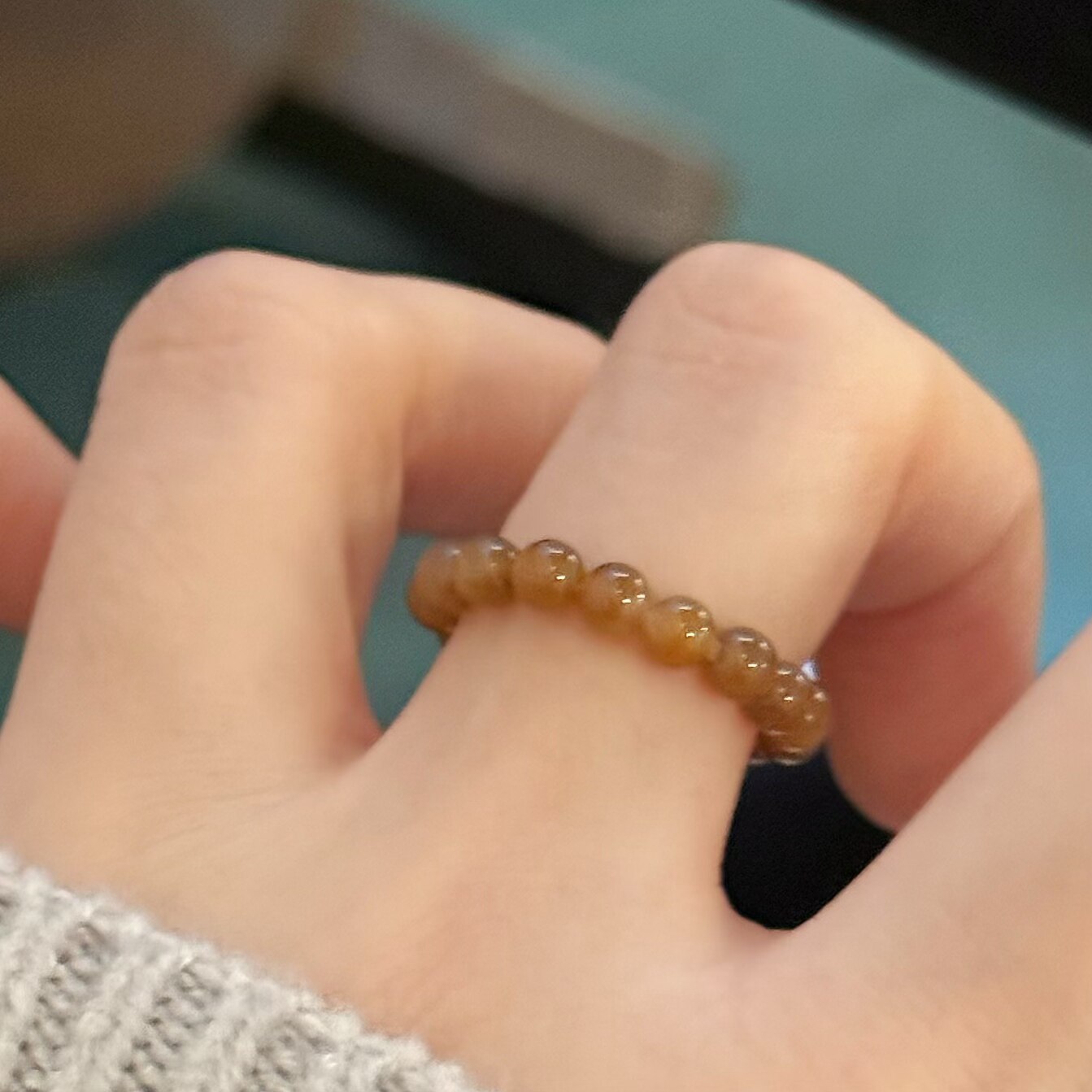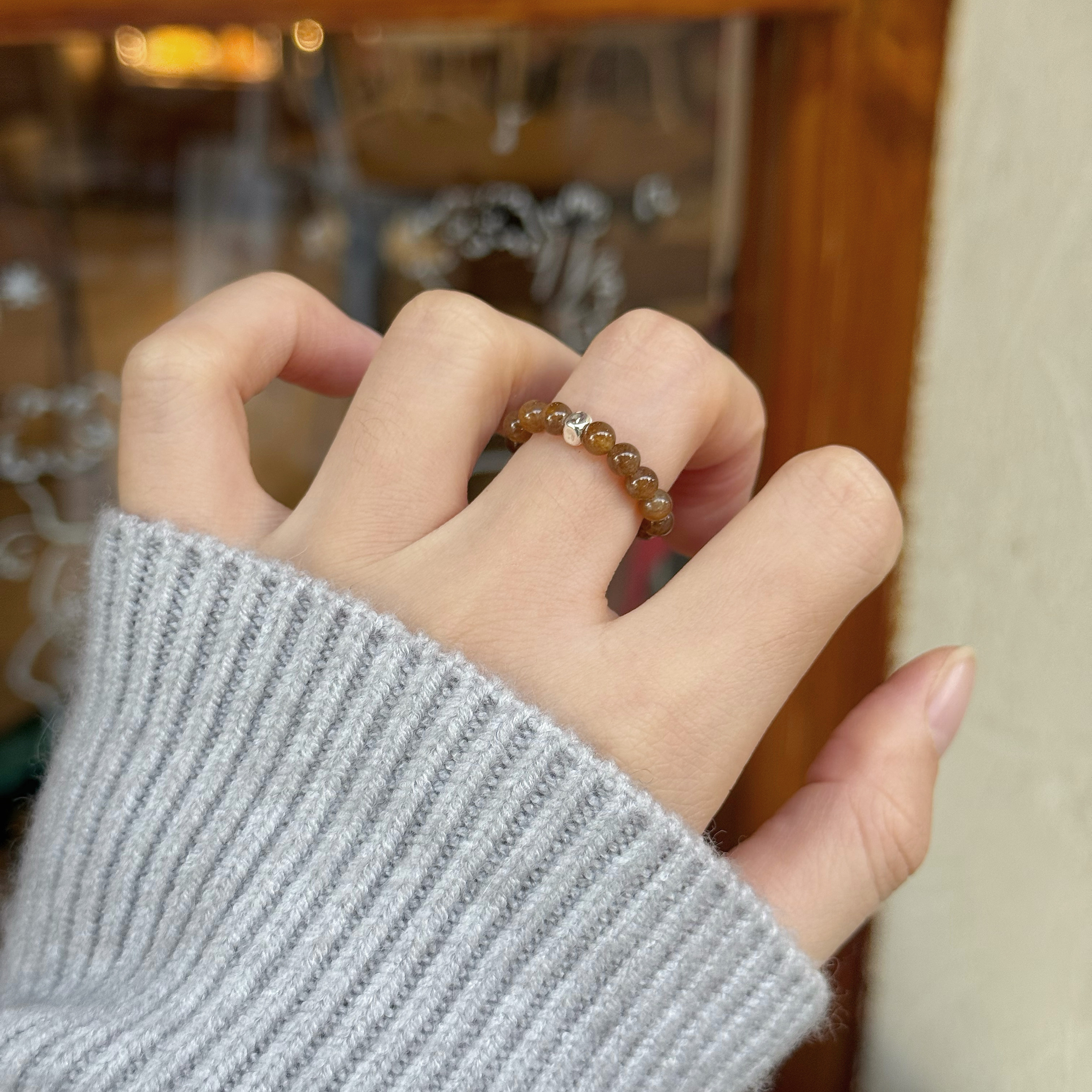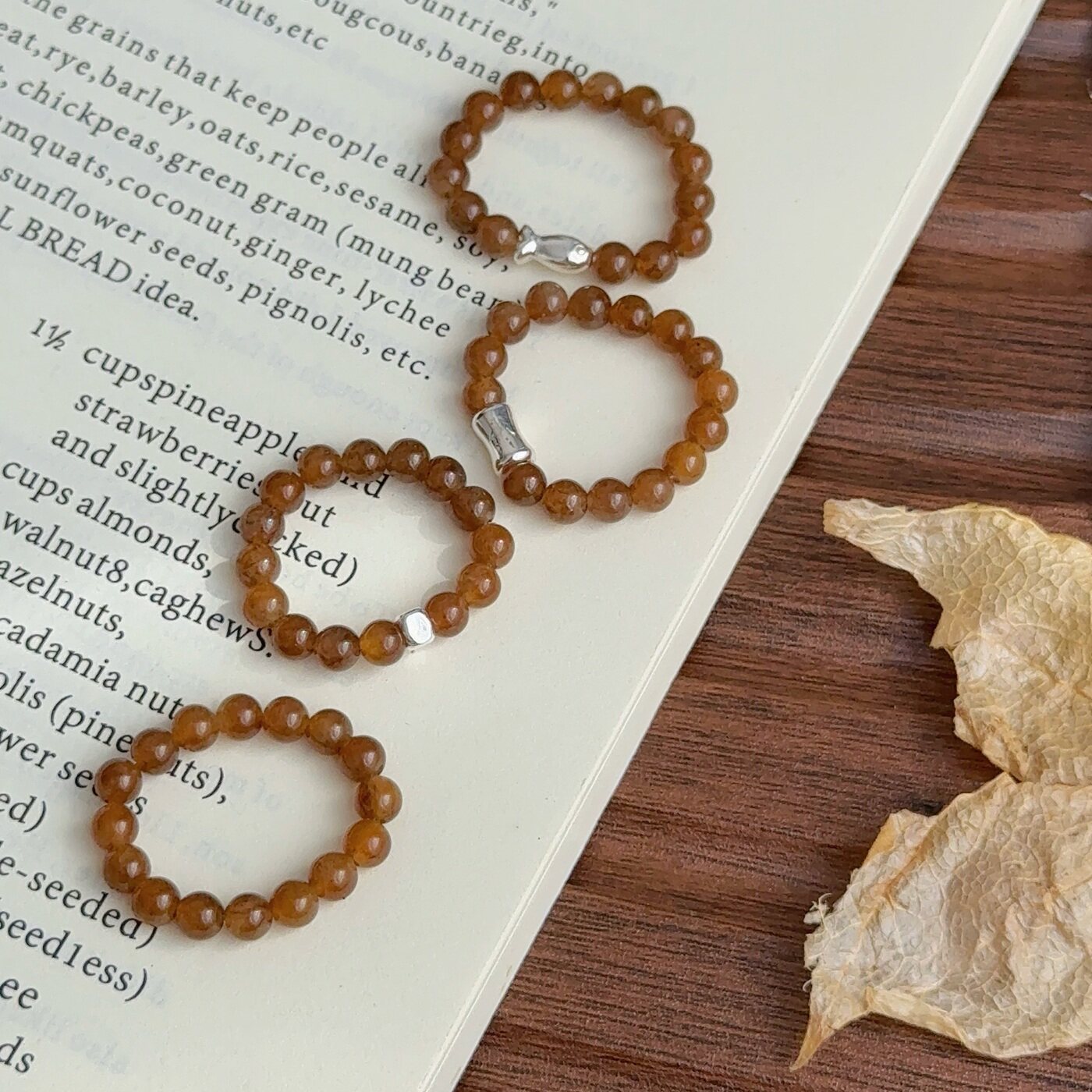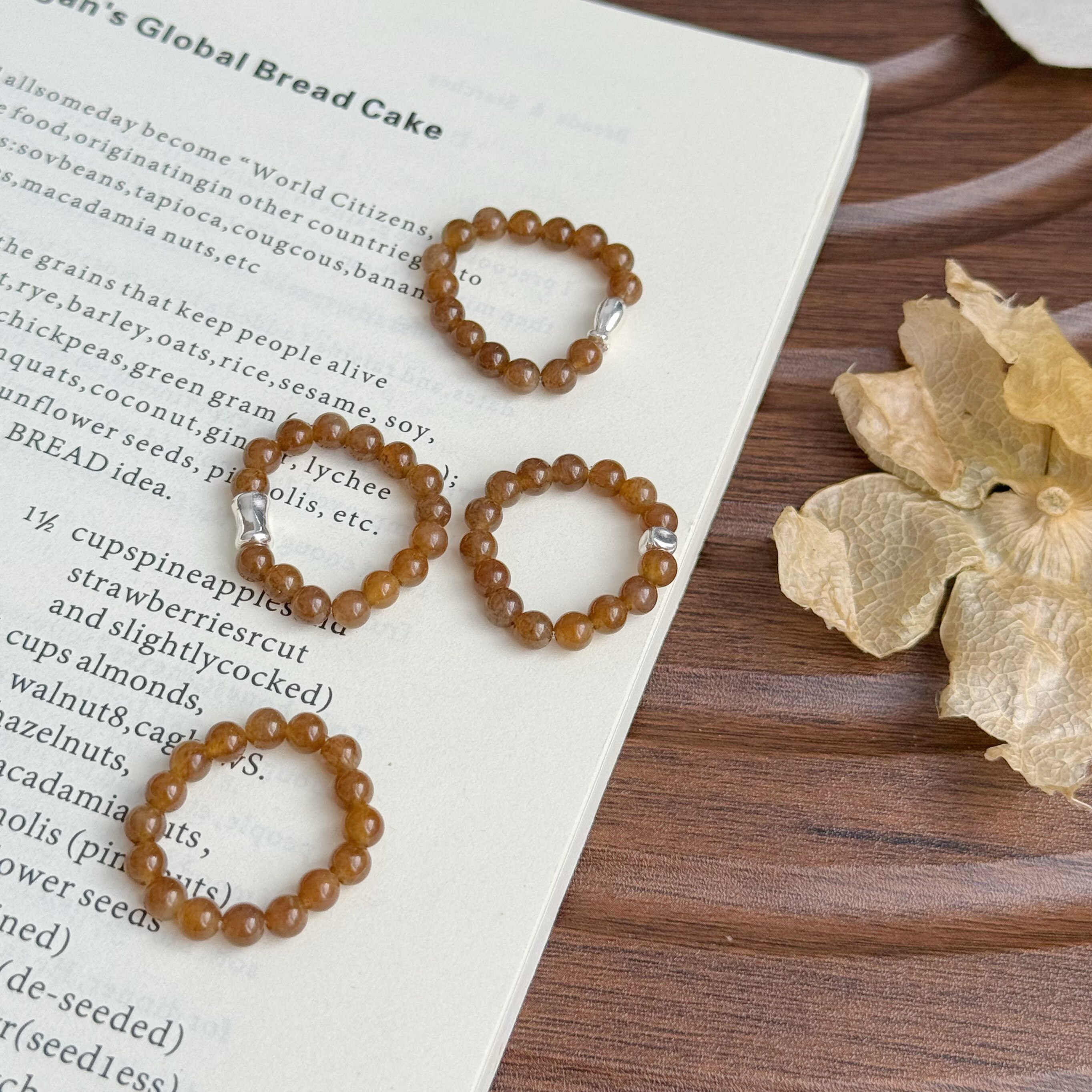 📚 天然糖料和田玉【秋栗2.0】串珠戒指正品纯银奶咖色指环素圈礼物