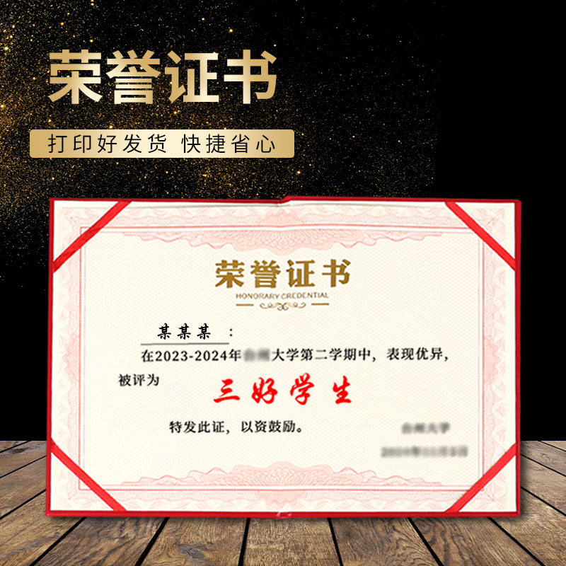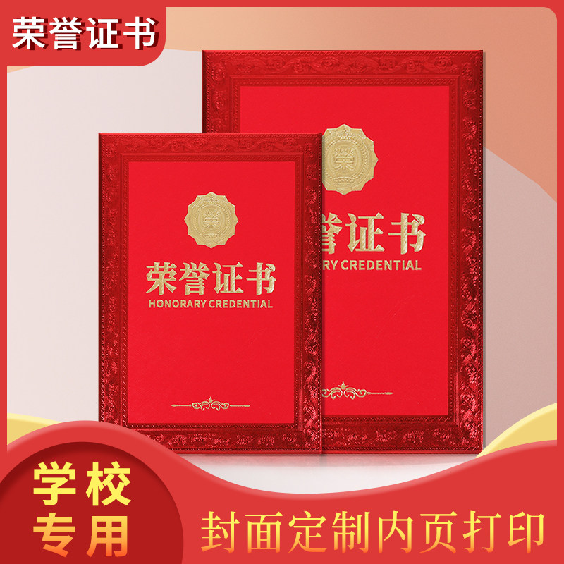📚 荣誉证书特种纸浮雕烫金防水外壳表彰奖状可打印学校专用高档证书