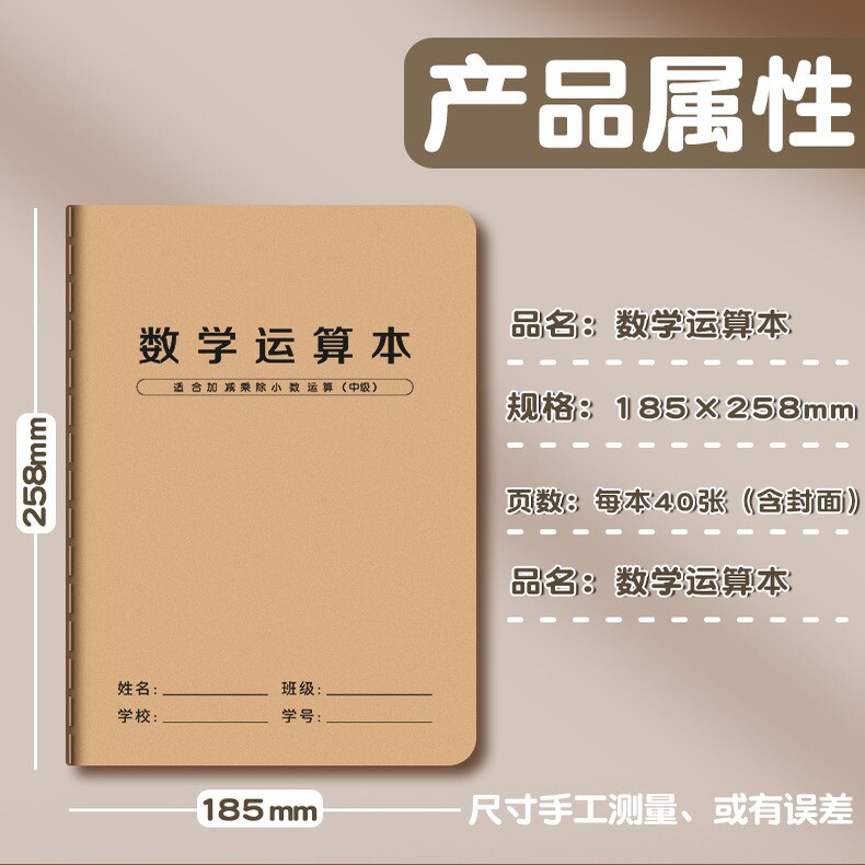 📚 数学运算本小学生专用竖式分区加减法乘除法数学对齐纸数位规范书写珠算本二三年级中级演算草稿本口算练习纸