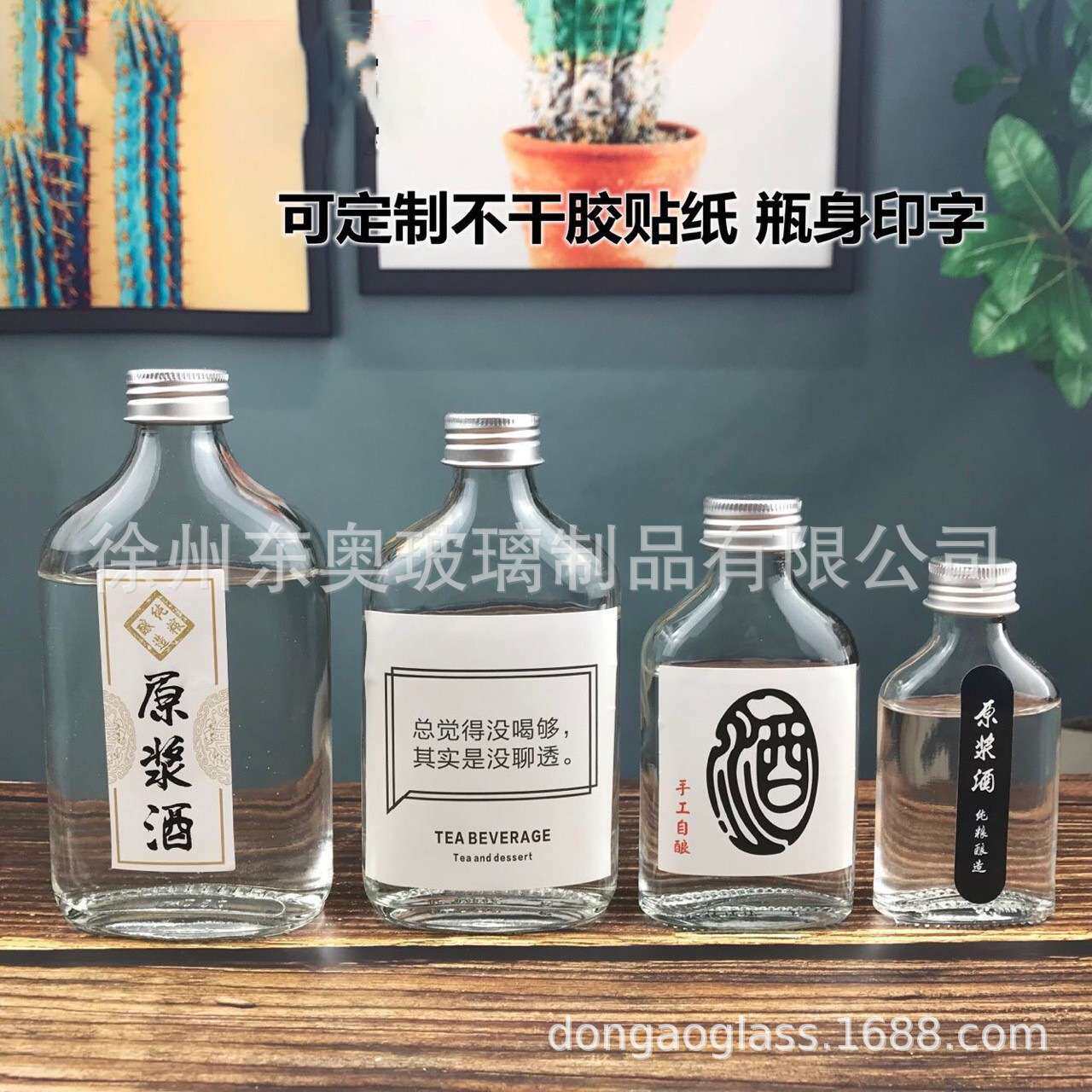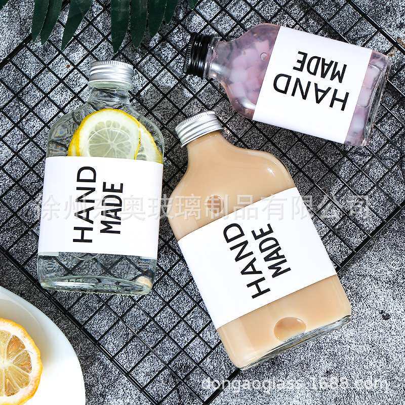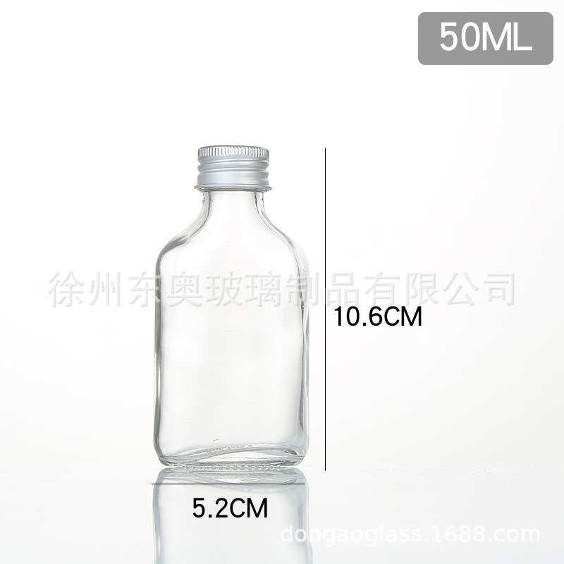 📚 现货玻璃饮料瓶透明扁形瓶咖啡奶茶瓶果汁瓶2两小酒瓶果酒瓶