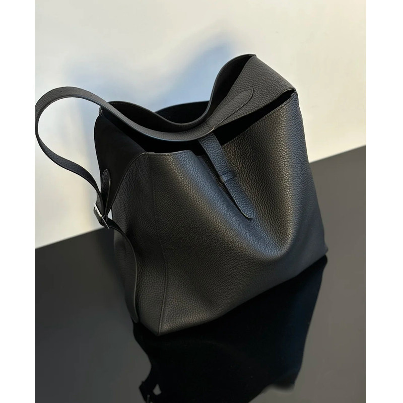 📚 水桶包真皮单肩包2025新款高级感头层牛皮百搭斜挎包风衣灰美拉德