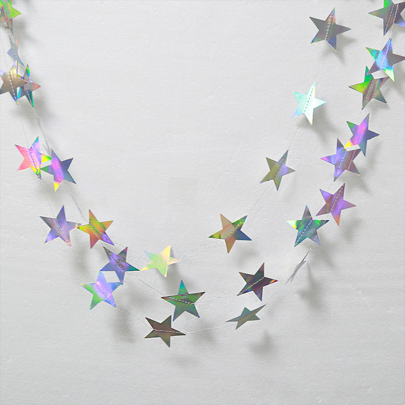 📚 迪斯科主题幻彩炫彩镭射圆片纸五角星拉花生日派对装饰背景墙挂件