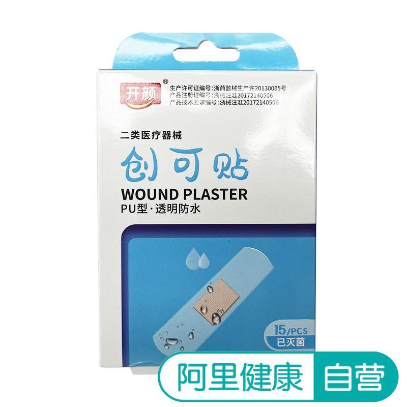 📚 开颜创可贴PU型透明防水透气72x22mm15片装已灭菌小创伤擦伤包邮
