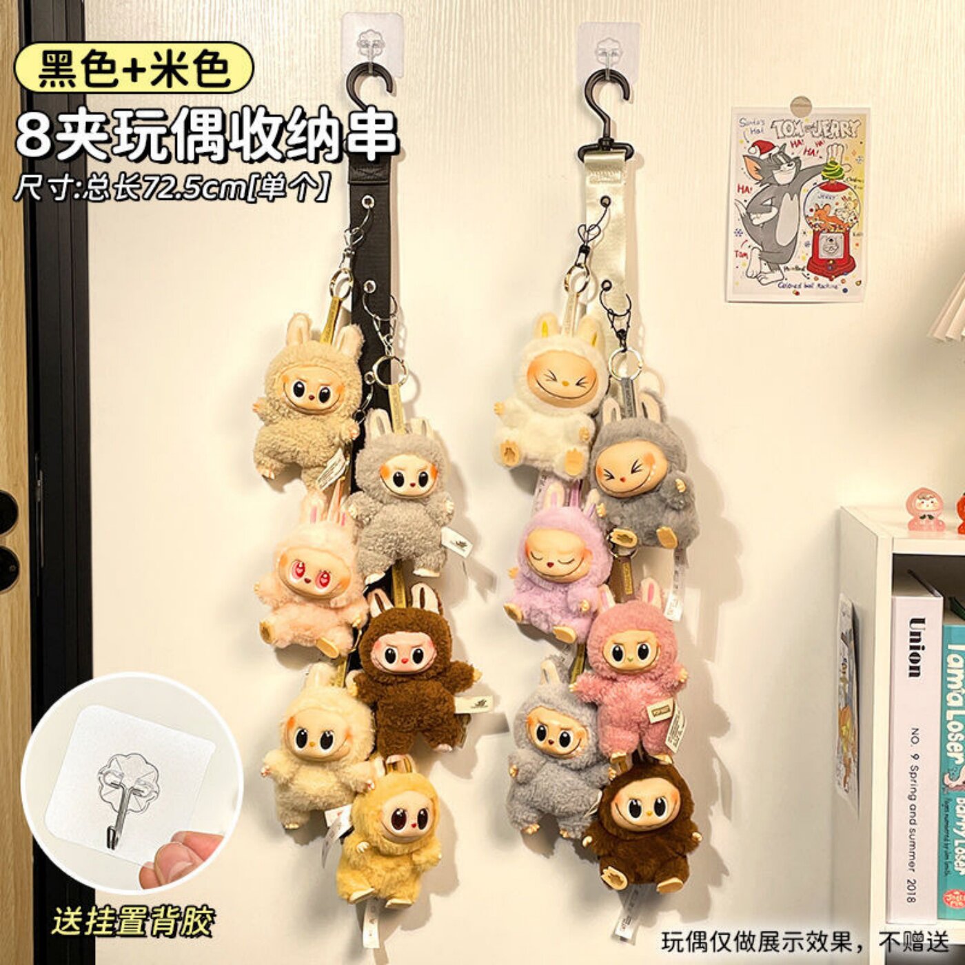 📚 拉布布娃娃收纳上墙壁挂钩门后夹毛绒玩偶串公仔挂件labubu展示架