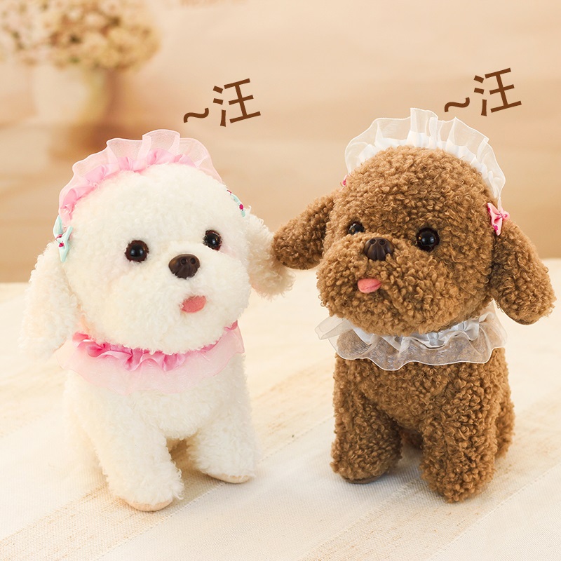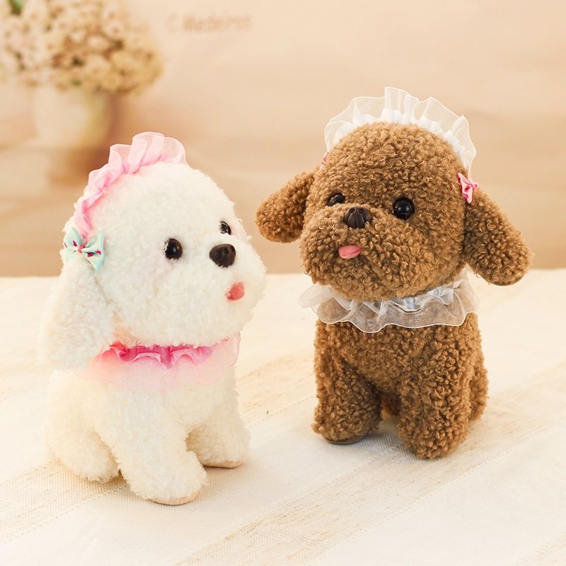 📚 可爱茶杯犬毛绒玩具仿真泰迪狗公仔小白狗会叫洛丽塔狗狗玩偶萌宠