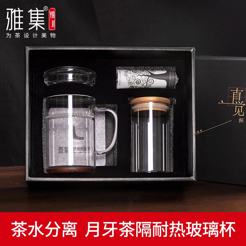 📚 雅集玻璃杯办公带茶隔过滤水杯绿茶杯耐热男士家用泡茶杯子450ml