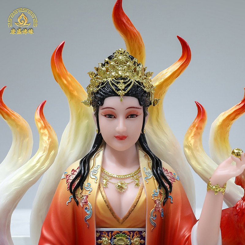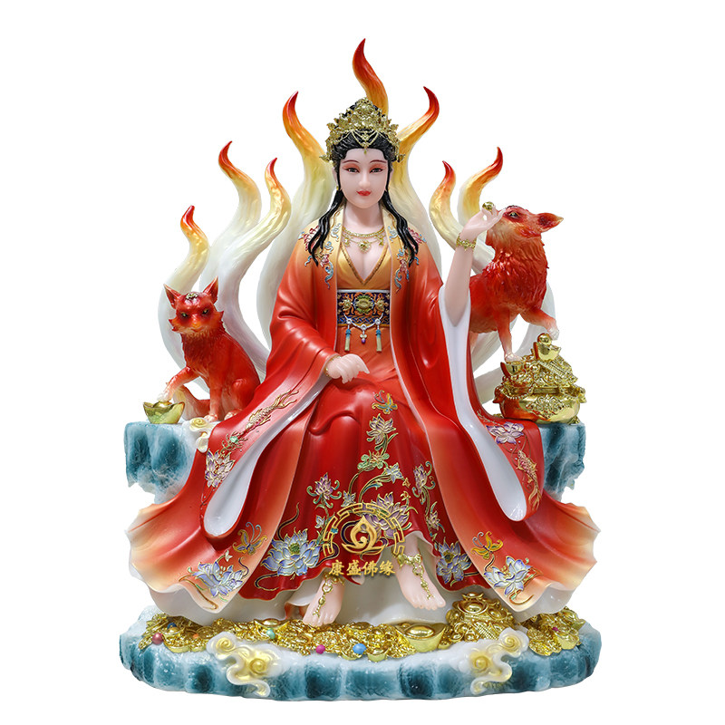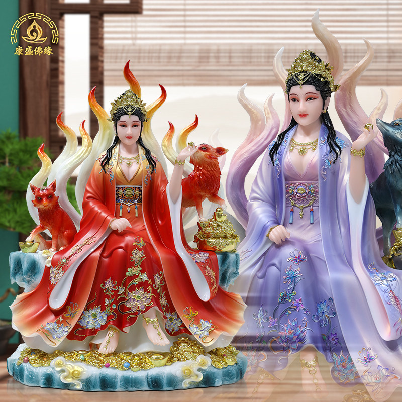 📚 九尾娘娘九尾狐神像新款红狐姑娘供奉青丘汉白玉真身白狐摆件家用