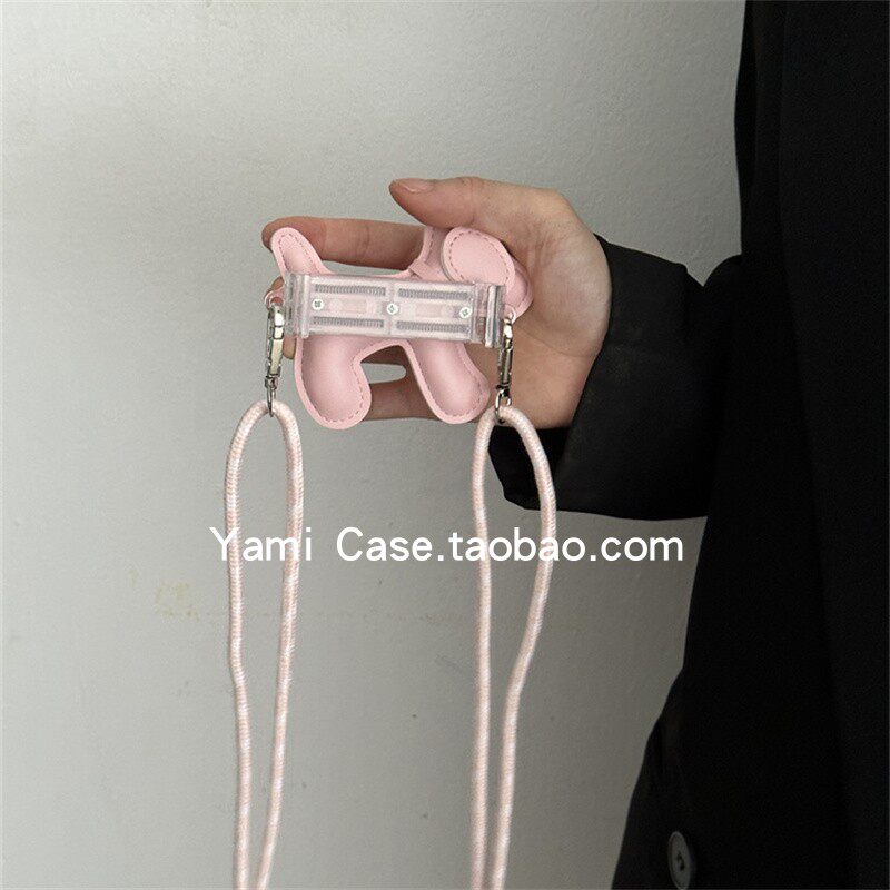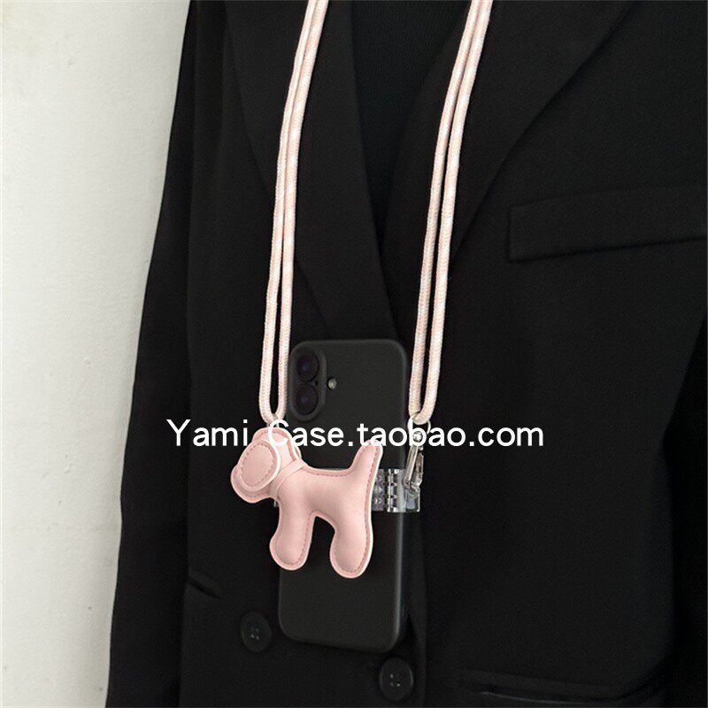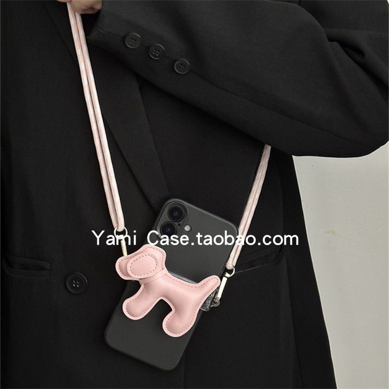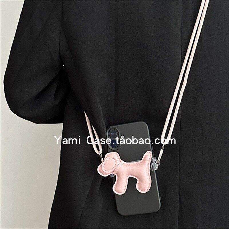 📚 手机背夹斜挎挂绳ins小众韩系粉色大耳朵狗狗解放双手手机夹通用