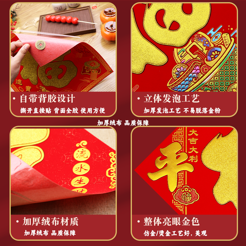 📚 2026马年画植绒布福字帖特大号入户门贴立体自粘新年春节装饰窗花