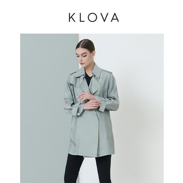 📚 柯罗芭夏季专柜同款灰绿色双排扣风衣 FW1751 ¥5290