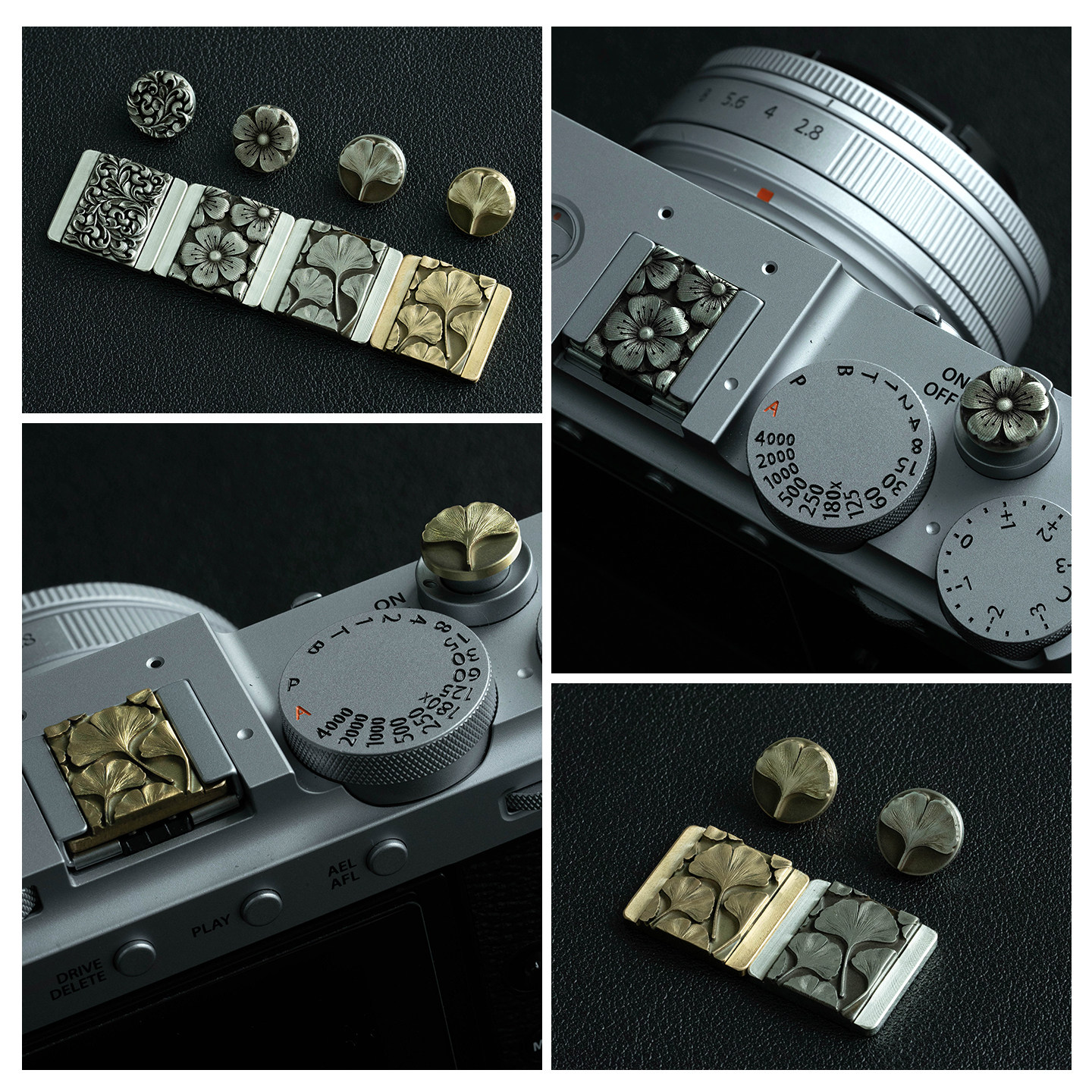 📚 阿尔飞斯相机热靴盖适用富士XM5XS10尼康Z62微单创意配件立体浮雕质感装饰快门按钮黄铜白铜金属防尘盖