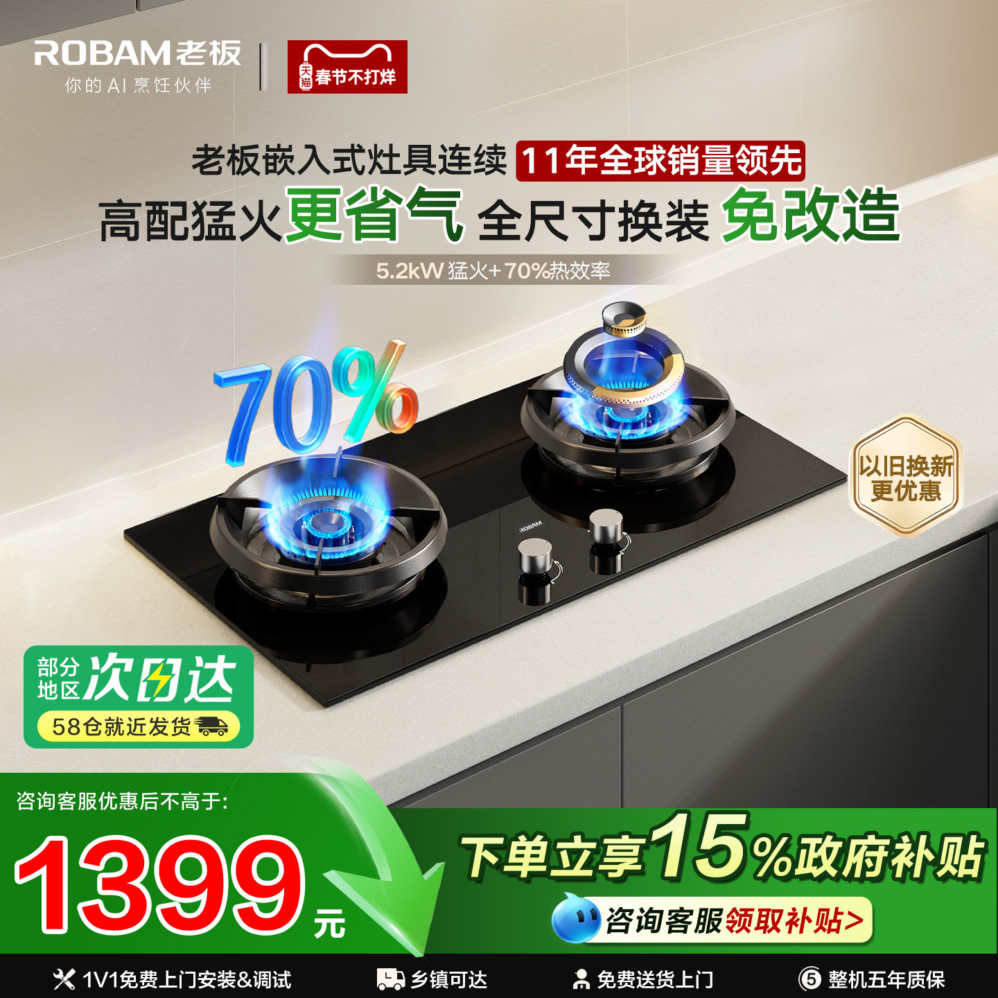 68¥ CZ005 I13bUN7Fhtt¥ https://m.tb.cn/h.7DTMKYx 老板燃气灶2B0A2/55B7A煤气灶家用双灶台天然气猛火灶官方旗舰店 --------------------- 【原售价】9,998元 【现售价】3,088元。