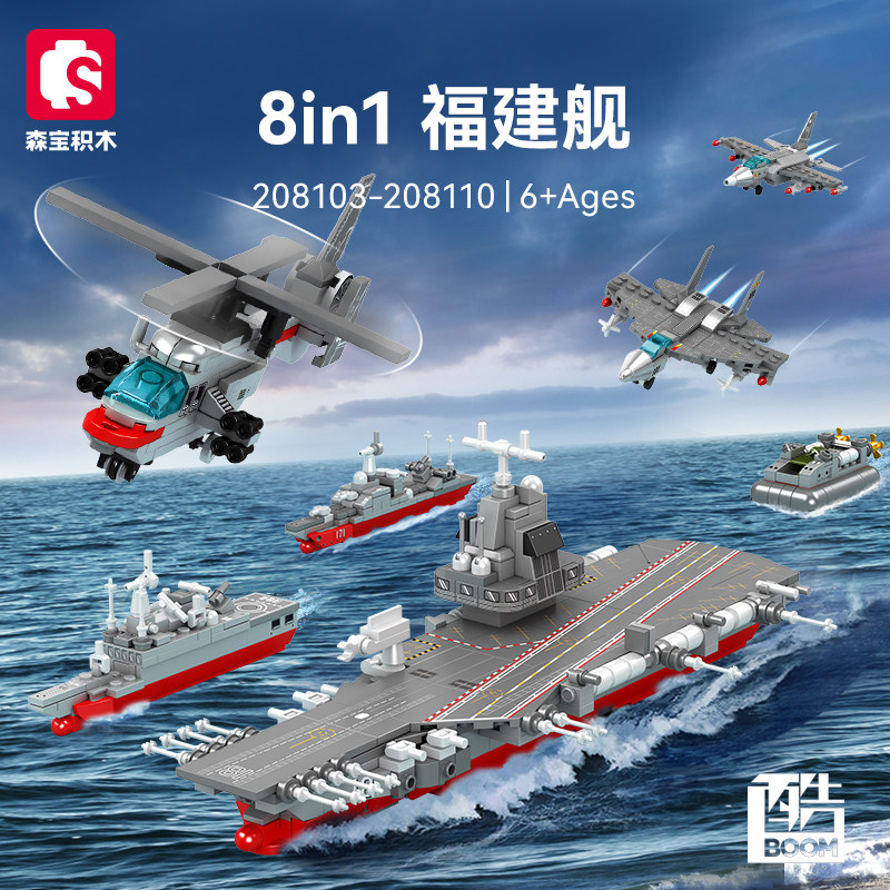 📚 森宝积木军事航空拼装福建舰儿童拼插航母舰载战斗机模型男孩玩具