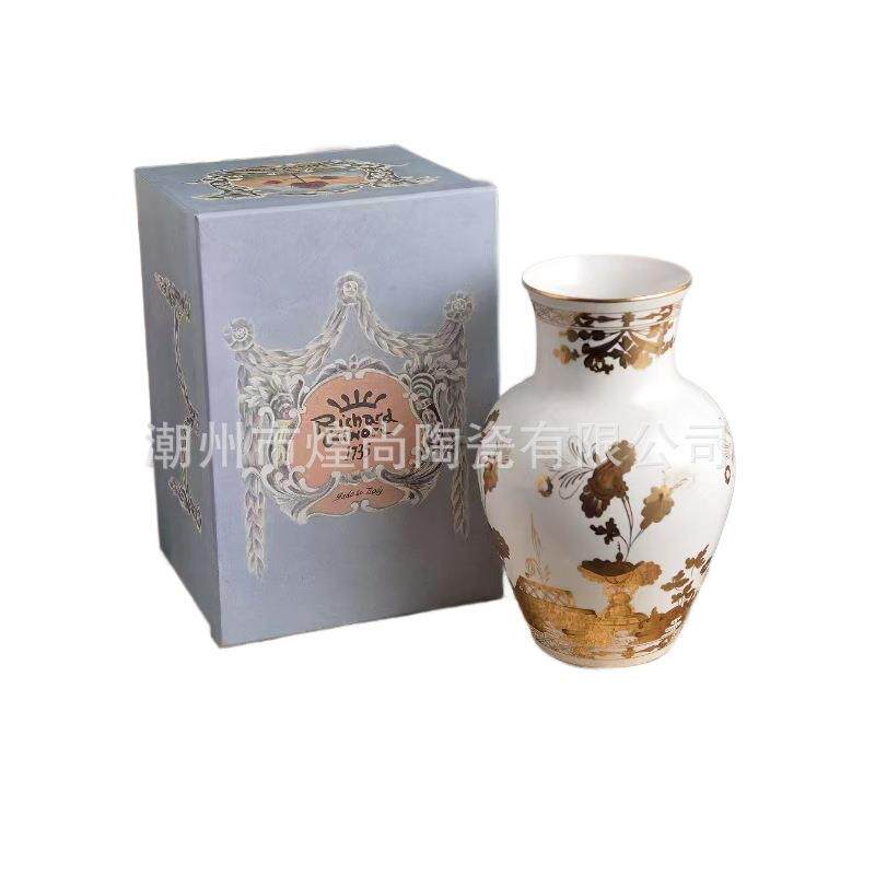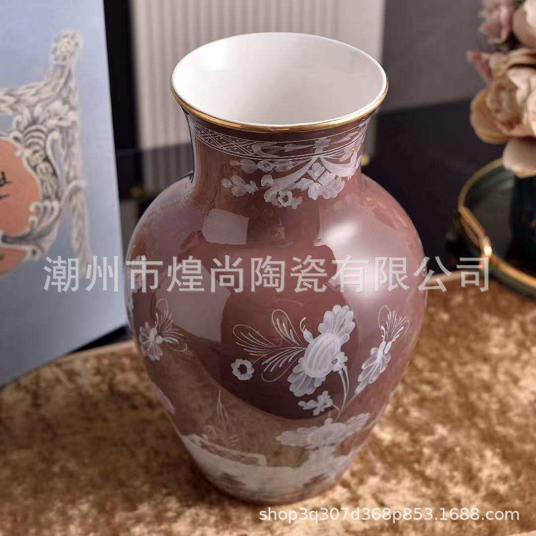 📚 意大利1735欧式式花开富贵手绘红色陶瓷花瓶客厅新居婚庆摆件装饰