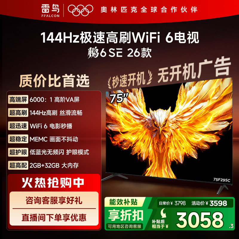 🎉TCL雷鸟鹏6SE 26款75英寸144Hz高刷WiFi6电视机:超值换新,补贴85%好物来袭!