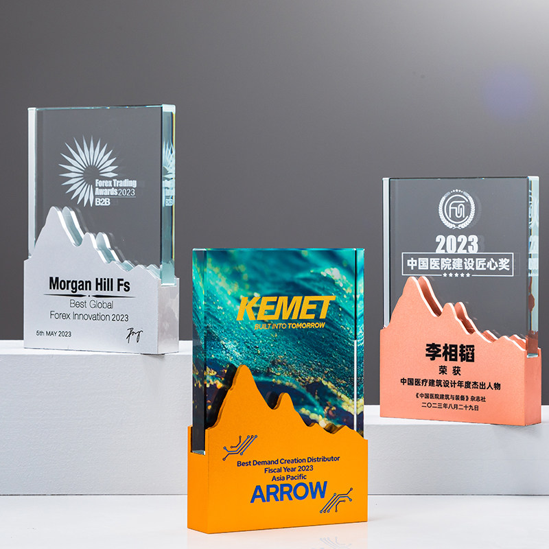 📚 金属山峰奖杯定制金银铜定做刻字销售冠亚军比赛颁奖退休纪念碑