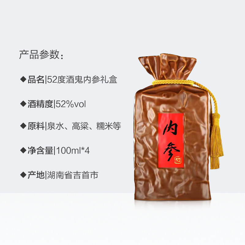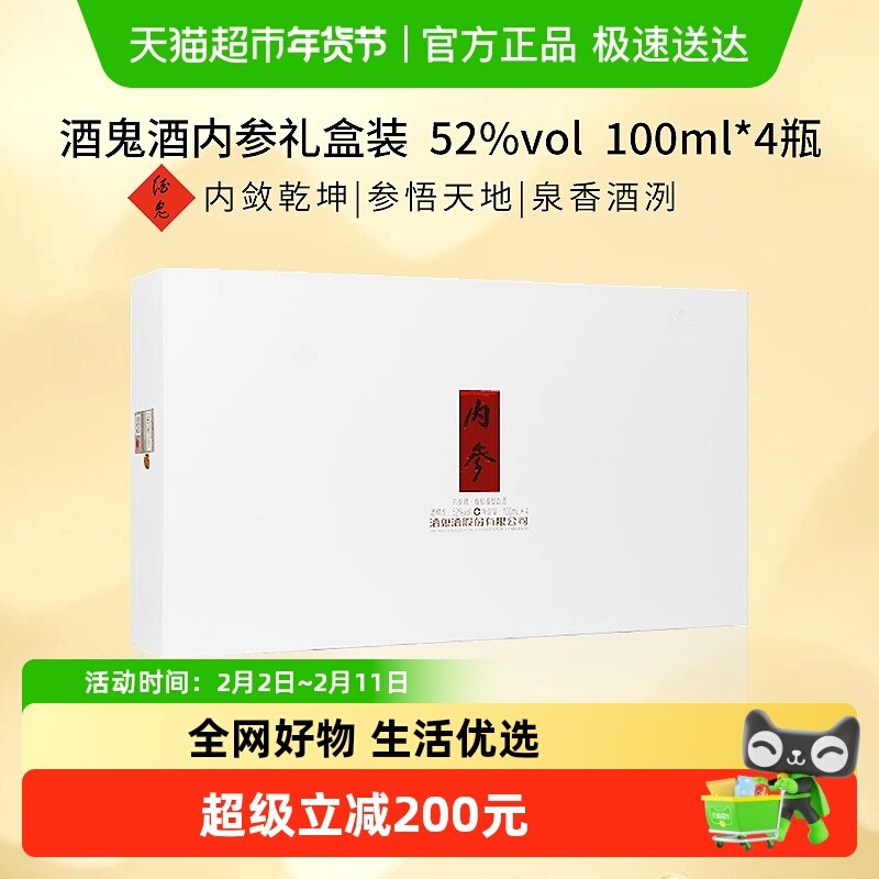📚 【礼盒】酒鬼酒内参52度100ml*4瓶礼盒装馥郁香型