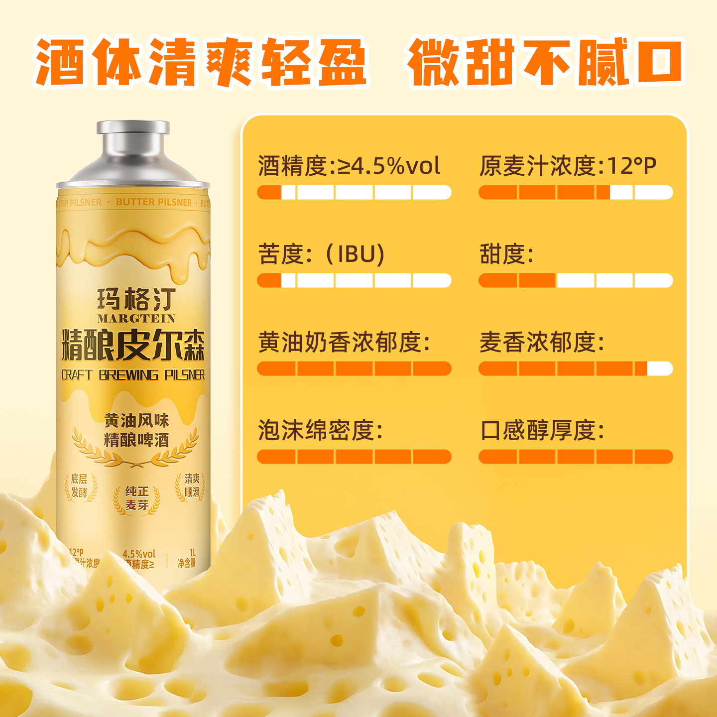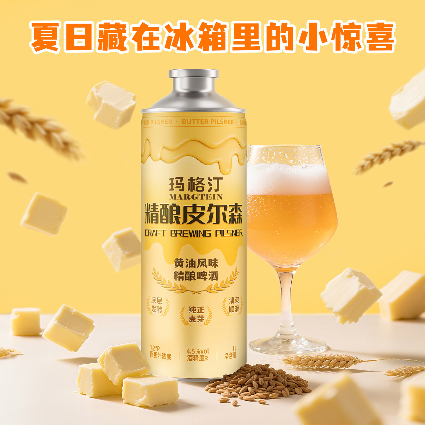 📚 【玛格汀】黄油皮尔森风味精酿原浆啤酒12°P全麦1L*6罐整箱包邮