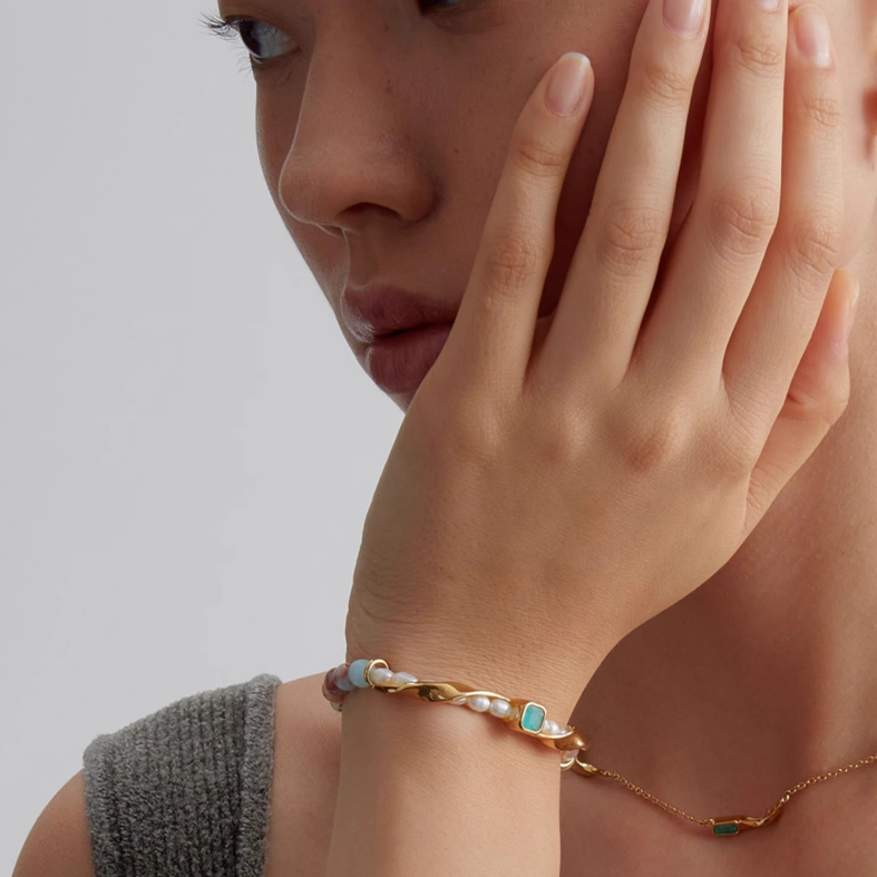 📚 KLIENSTONE冰裂蓝水晶珍珠手镯个性典雅